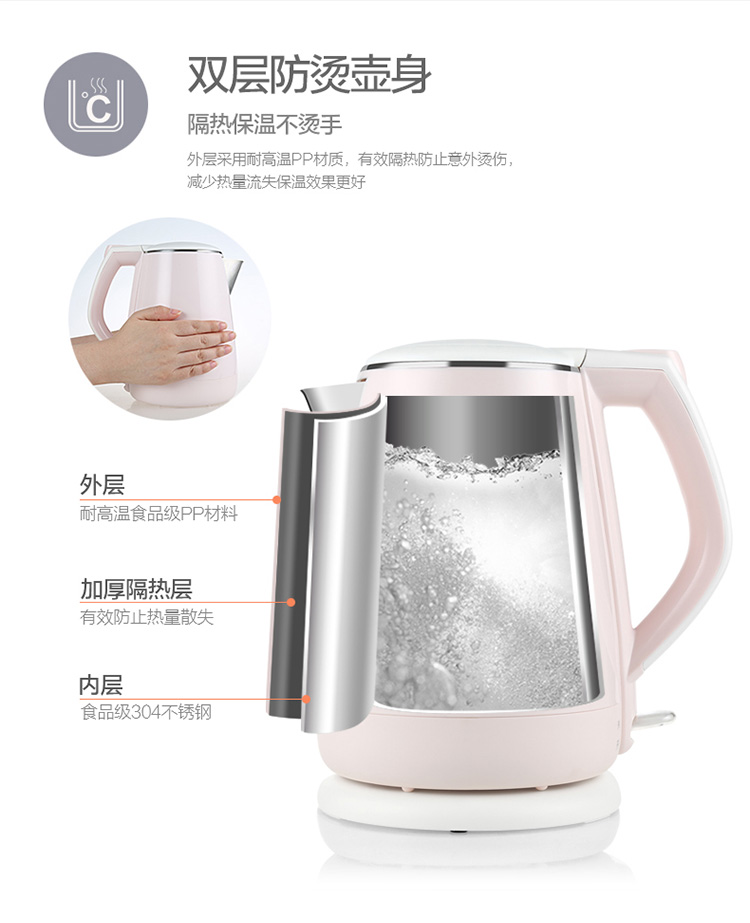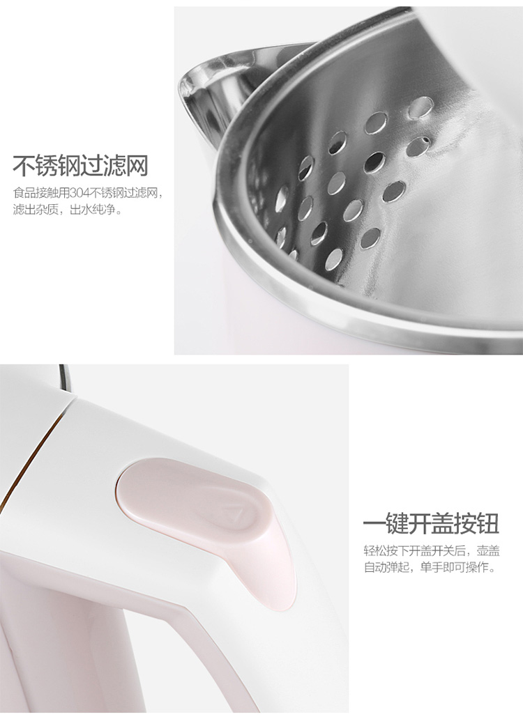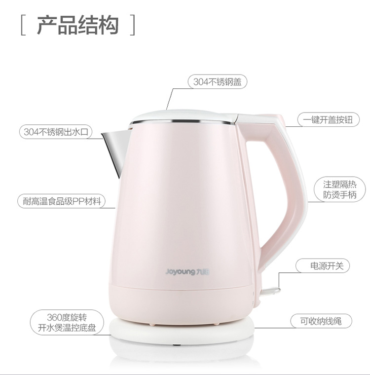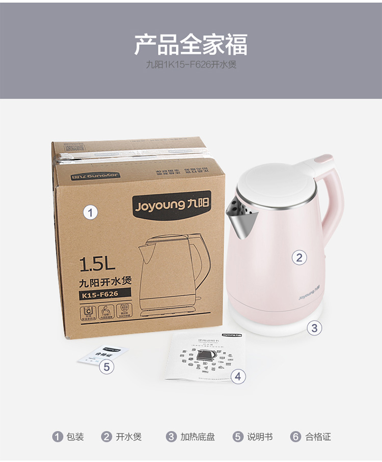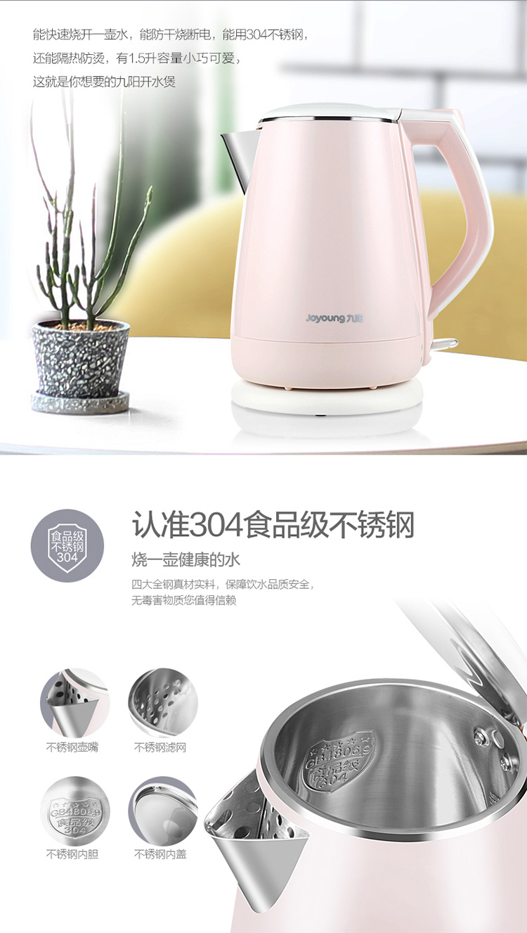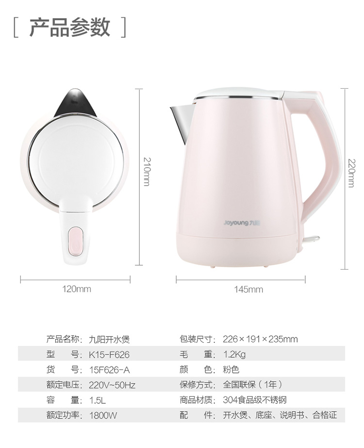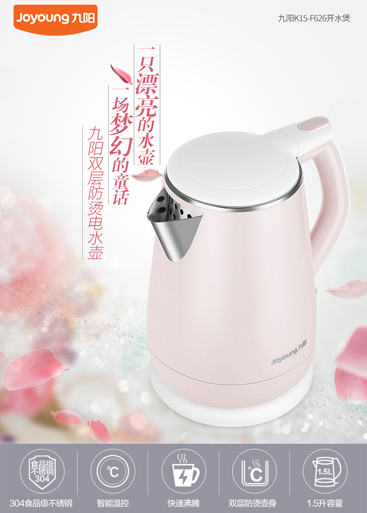 • 商品名称:九阳(Joyoung)K15-F626 电水壶热水壶 全钢内胆 烧水壶 双层防烫公主壶