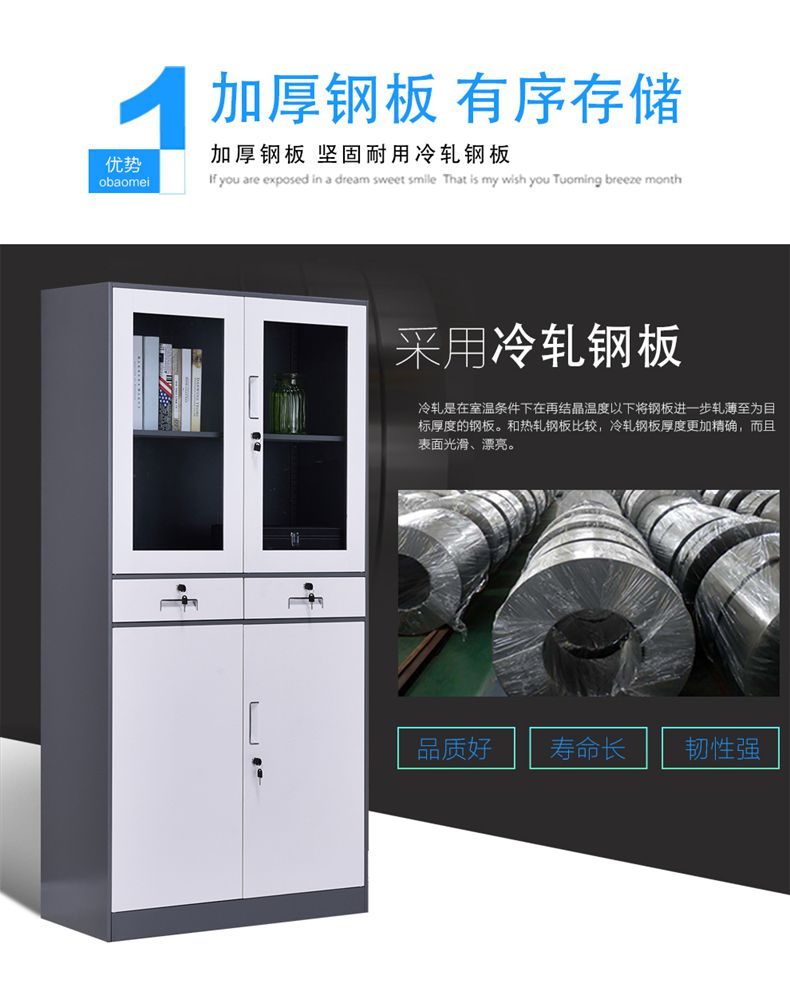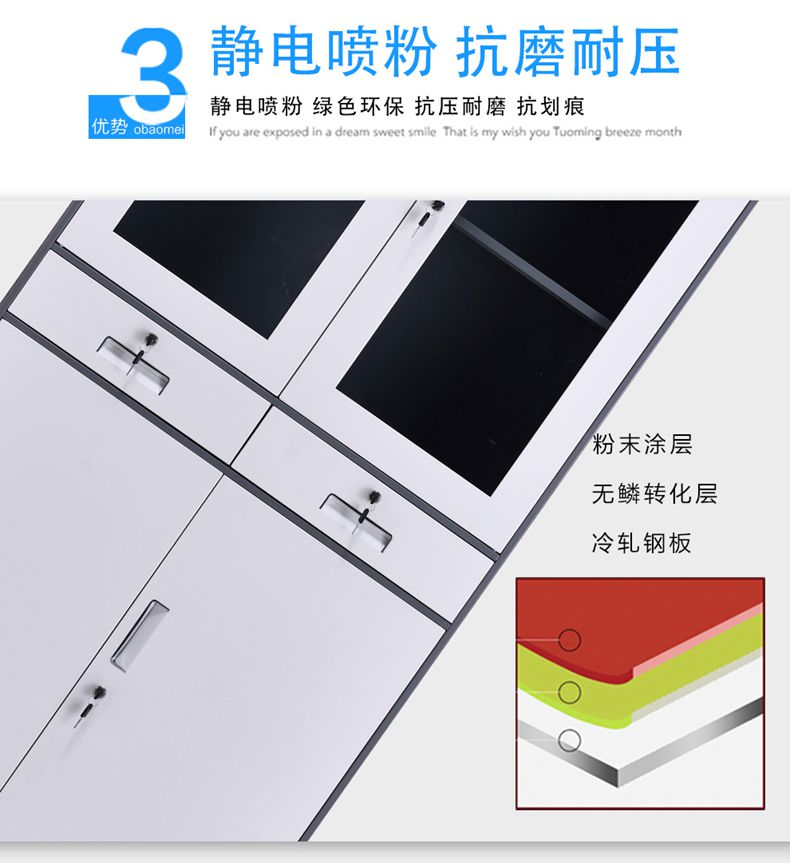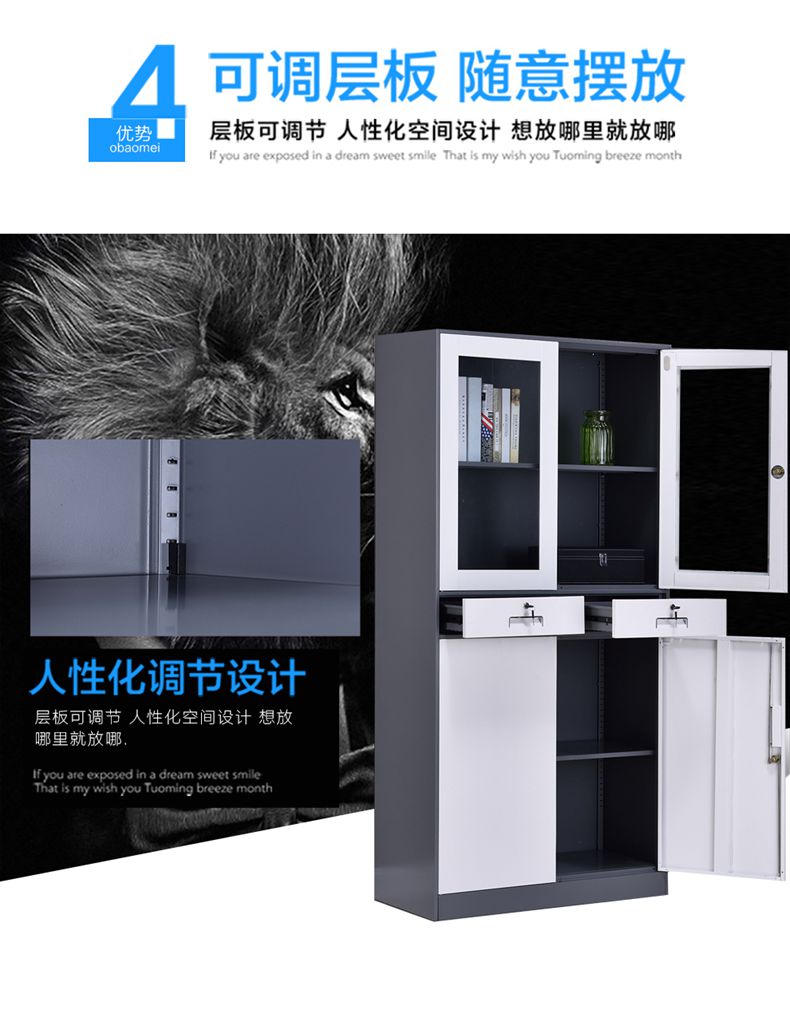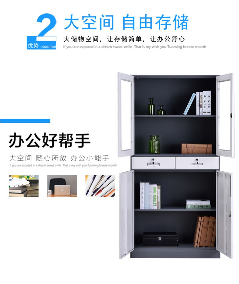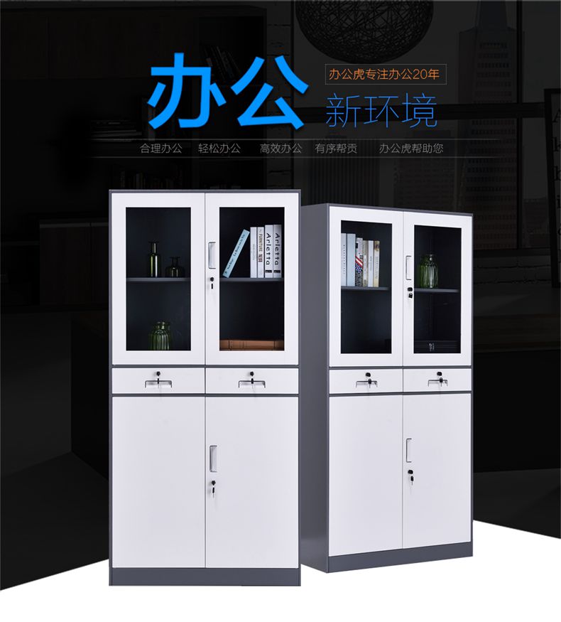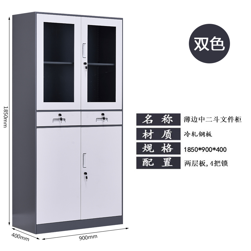 • 商品名称:永威 铁皮文件柜 资料整理柜档案柜铁皮柜子储物柜 玻璃+铁皮 1800*850*390mm (中二斗柜)