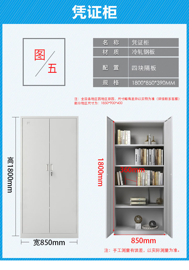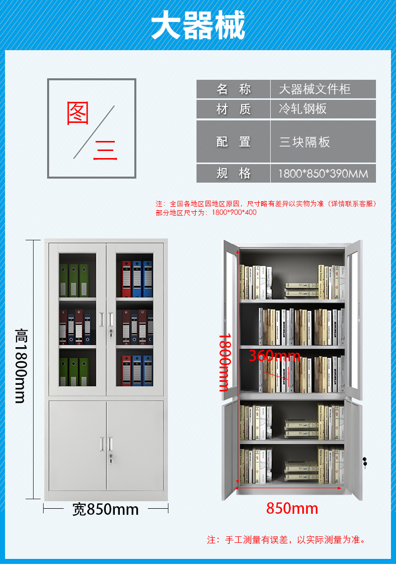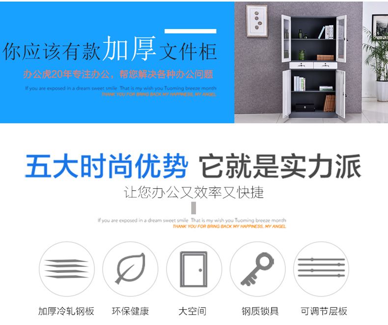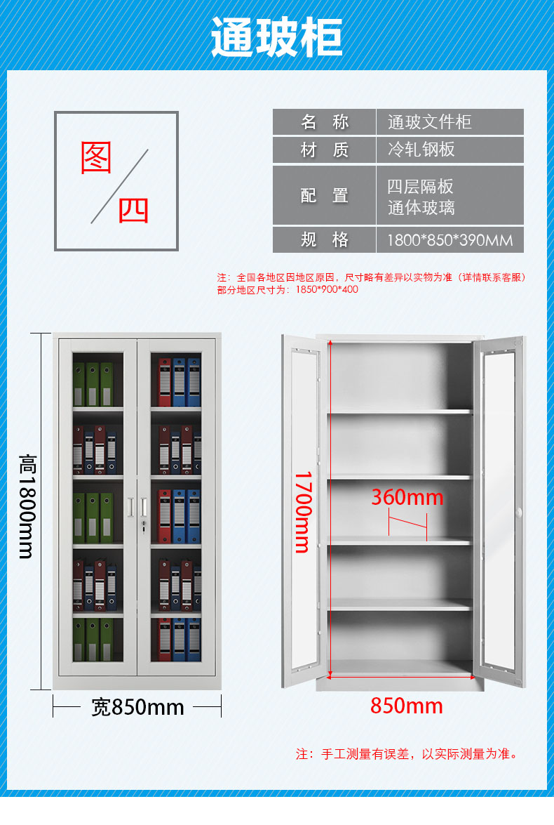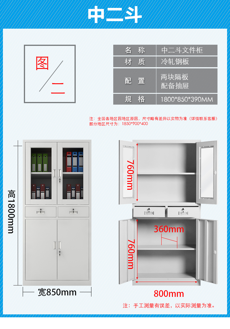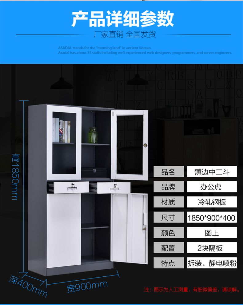 • 商品名称:永威 铁皮文件柜 资料整理柜档案柜铁皮柜子储物柜 玻璃+铁皮 1800*850*390mm (中二斗柜)