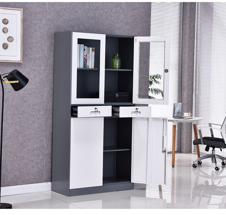 永威 铁皮文件柜 资料整理柜档案柜铁皮柜子储物柜 玻璃+铁皮 1800*850*390mm (中二斗柜)