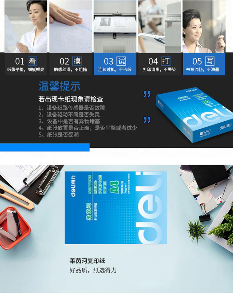 • 商品名称:得力(deli)7401 莱茵河70克A4复印纸 5包/箱
