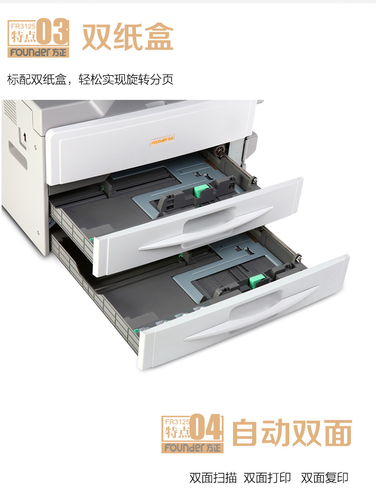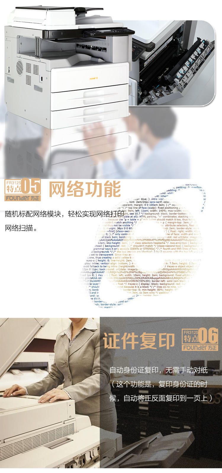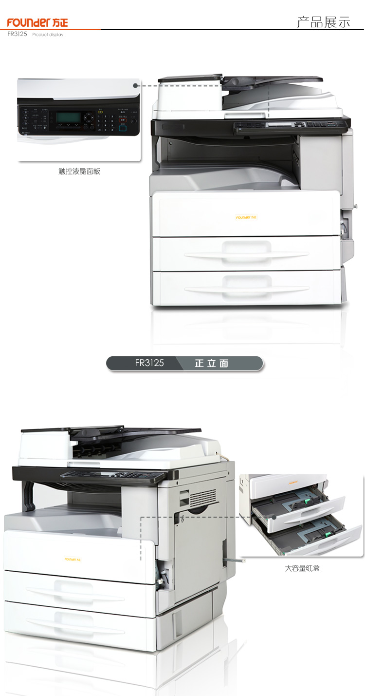 • 商品名称:方正(Founder)FR-3125 A3多功能黑白数码复合机一体机 (双层纸盒+双面输稿器) 原价:12998元