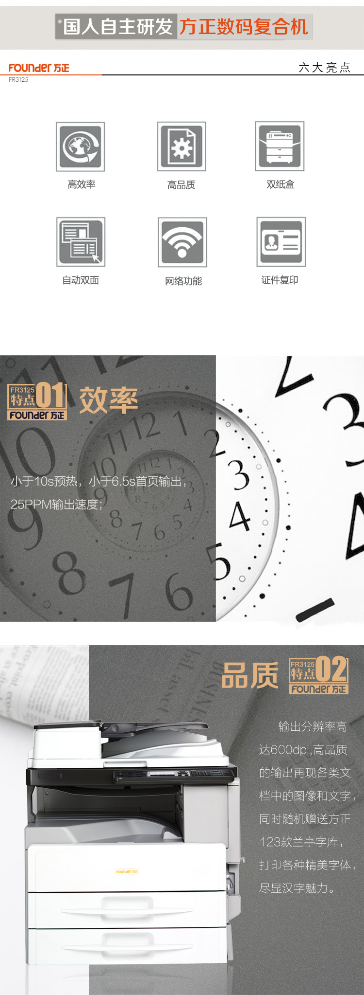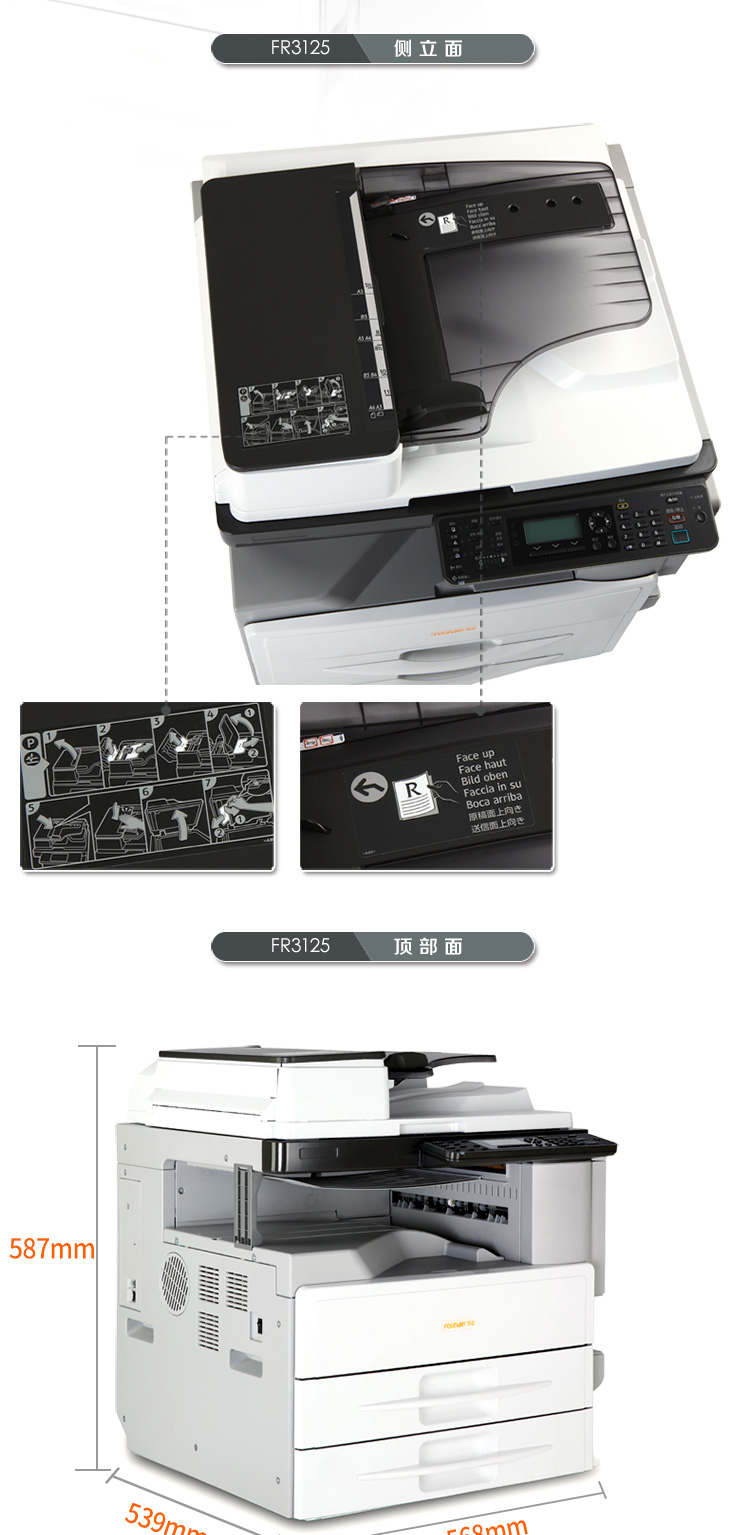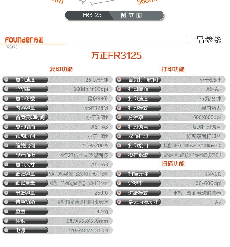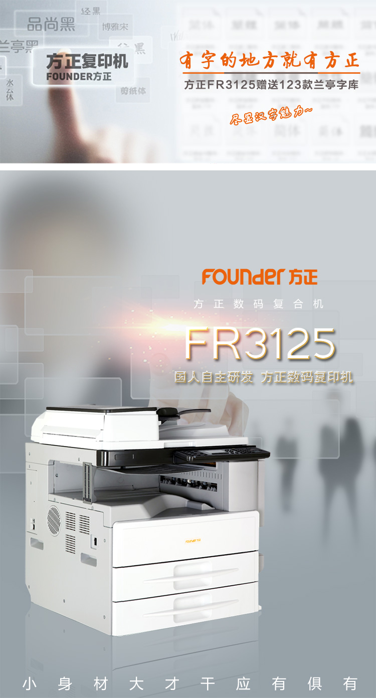 • 商品名称:方正(Founder)FR-3125 A3多功能黑白数码复合机一体机 (双层纸盒+双面输稿器) 原价:12998元