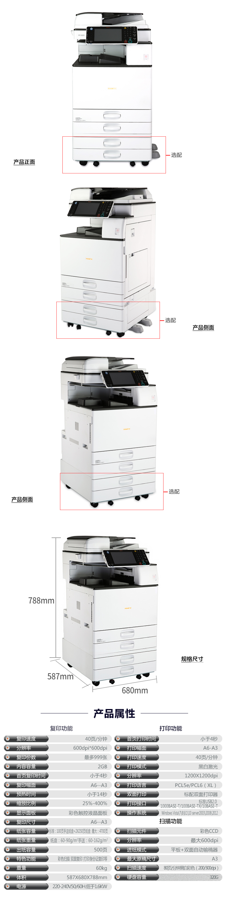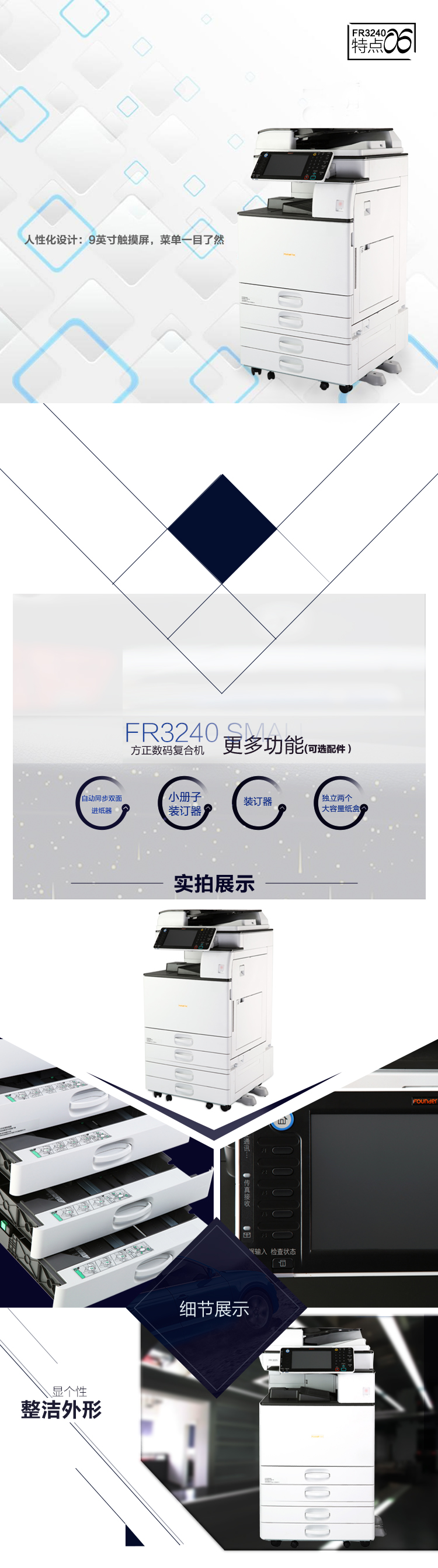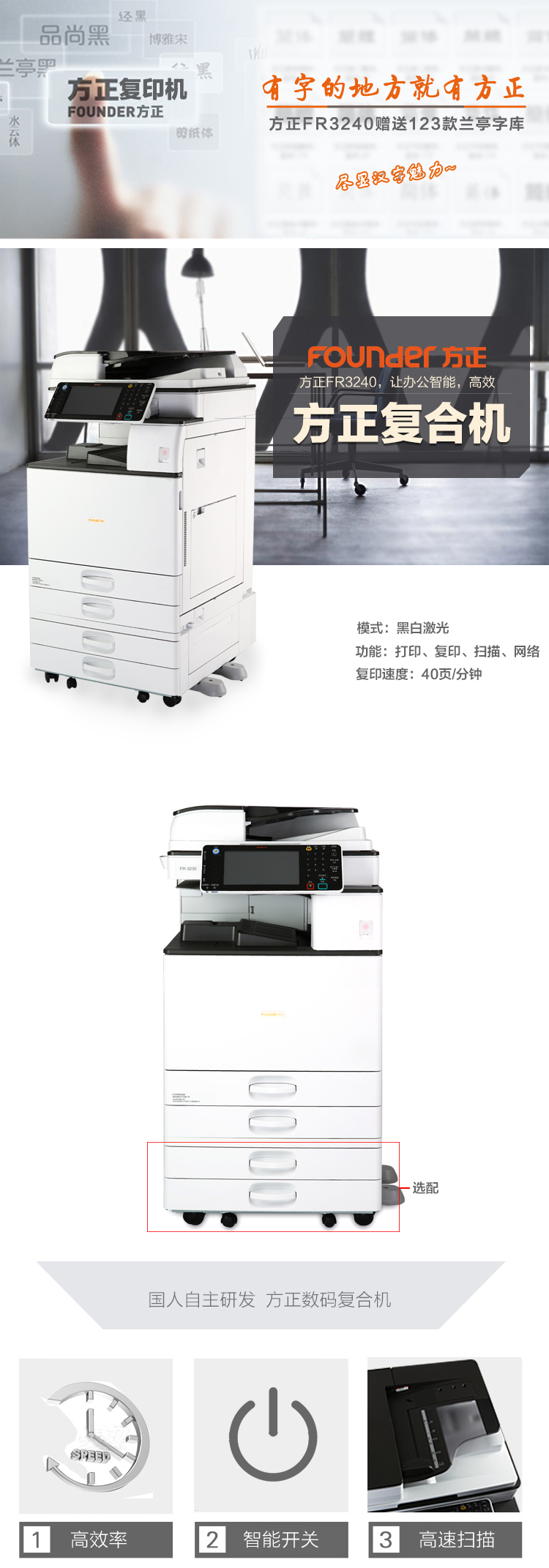 • 商品名称:方正(Founder)FR-3240 A3黑白多功能数码复合机 双层纸盒+双面输稿器