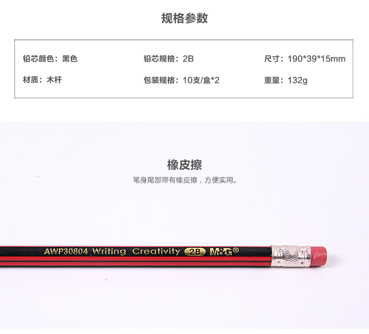 • 商品名称:晨光(M&G) AWP30804 2B六角木杆木头绘画铅笔 10支/盒