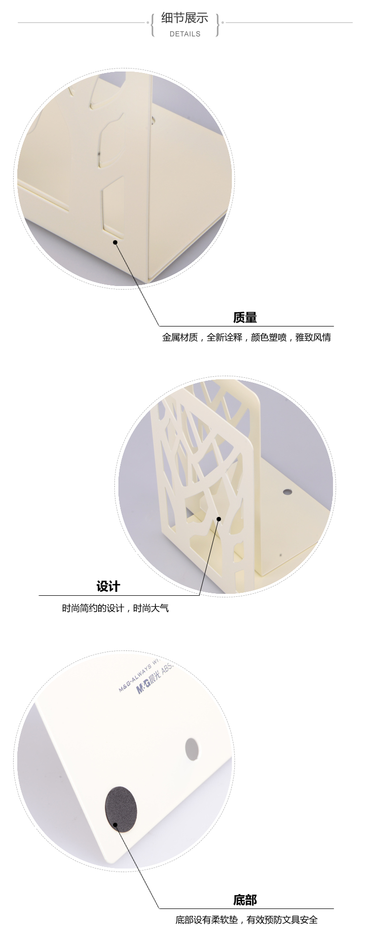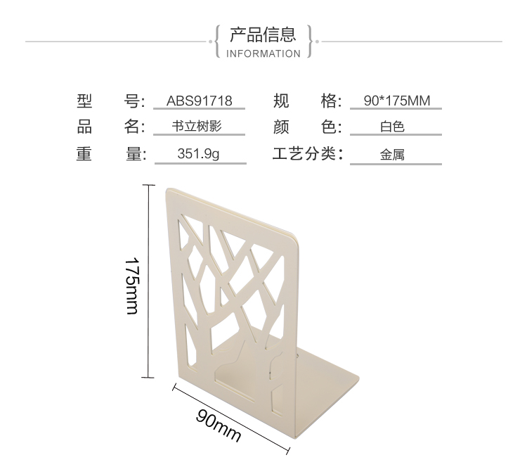 • 商品名称:晨光(M&G)ABS91718 树影金属铁书立书架2片 6.8英寸 白色