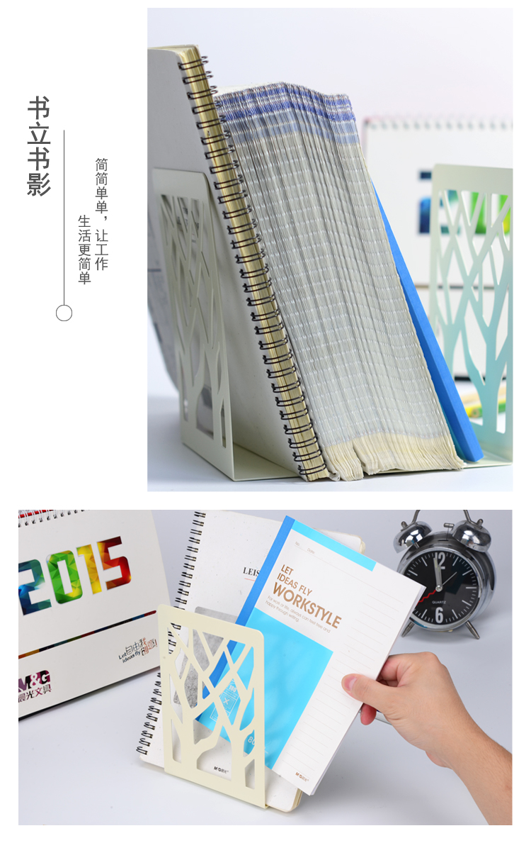 晨光(M&G)ABS91718 树影金属铁书立书架2片 6.8英寸 白色