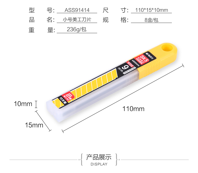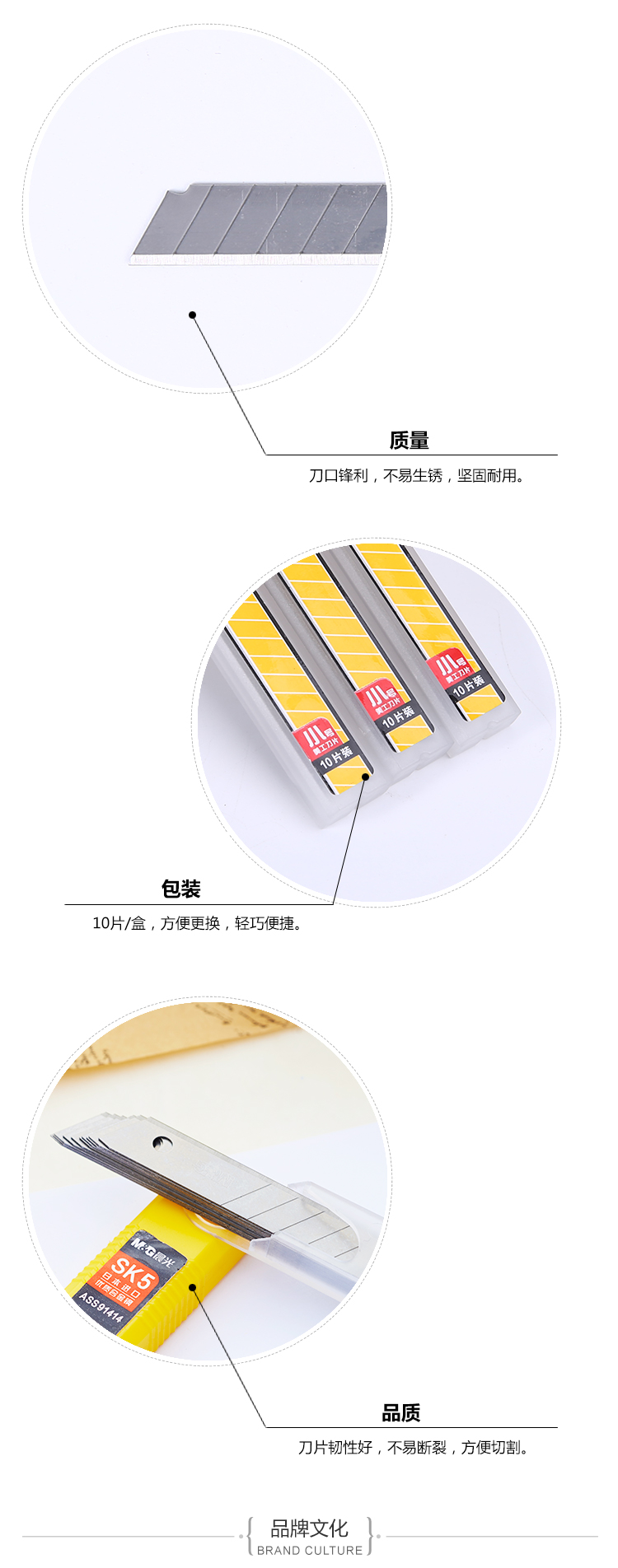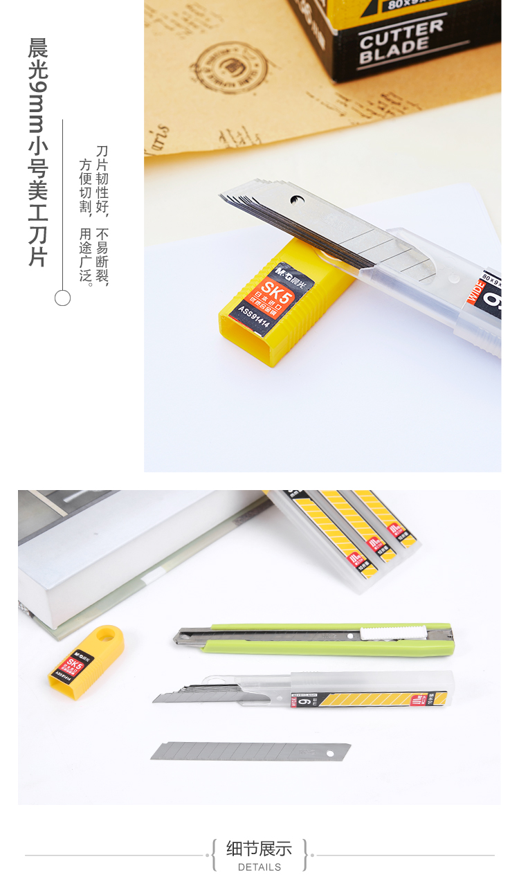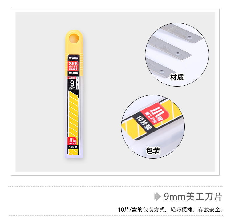 • 商品名称:晨光(M&G)ASS91414 小号美工刀片9mm 10片/盒