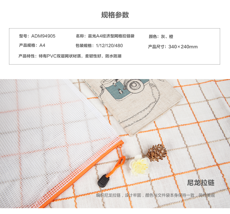• 商品名称:晨光(M&G) ADM94905 A4经济型网格拉链袋 颜色随机
