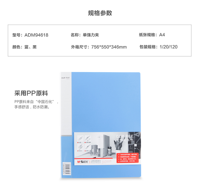 • 商品名称:晨光(M&G) AD94618 单强力夹 报告文件 整理夹 蓝色