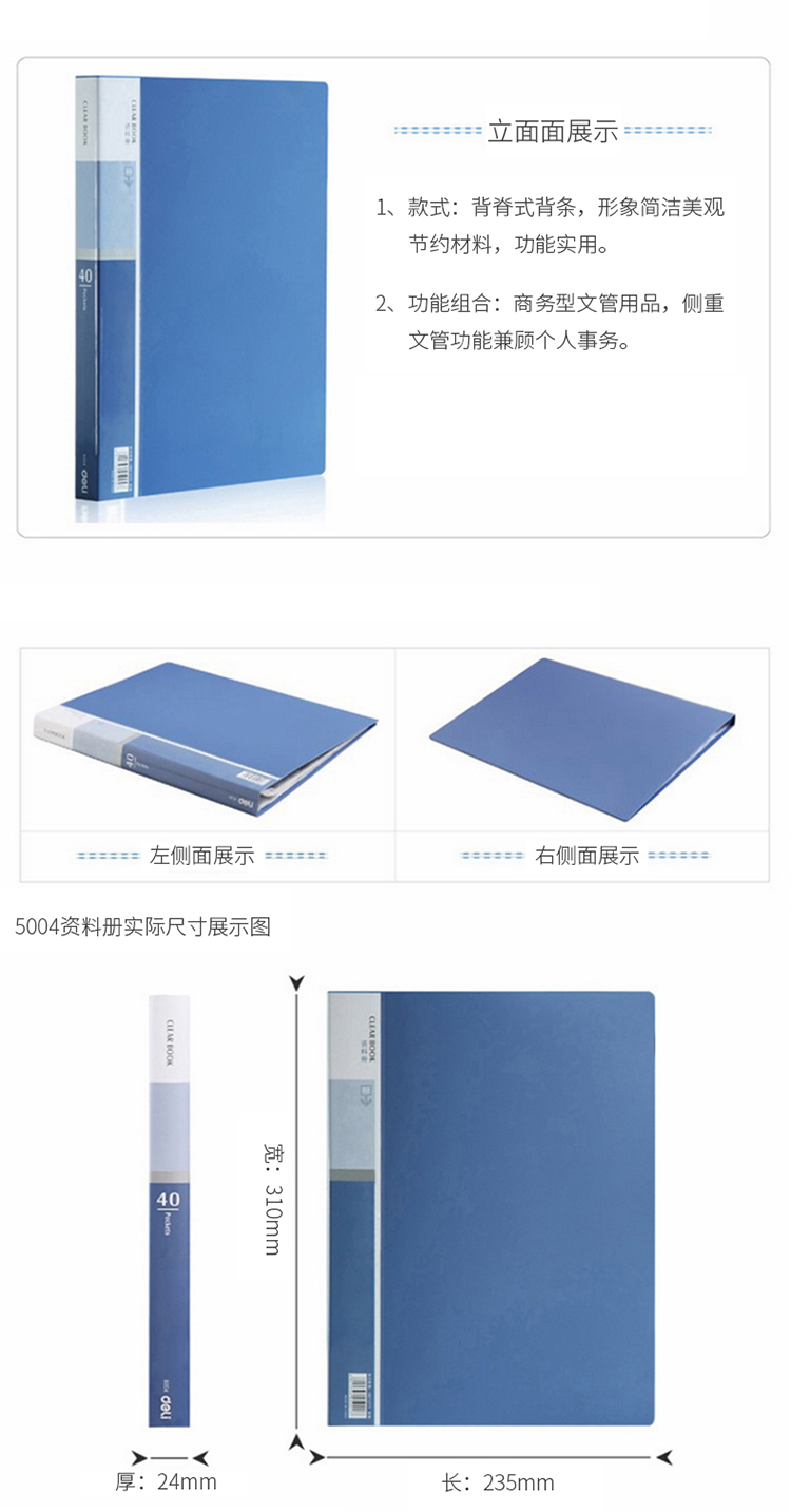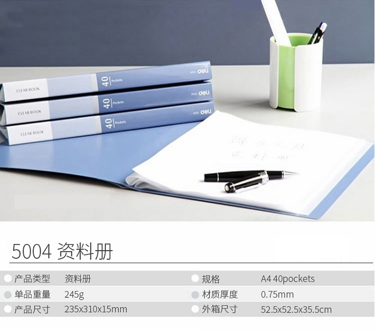 • 商品名称:得力(deli) 5004 A4/40页商务型资料册 蓝色 10只装