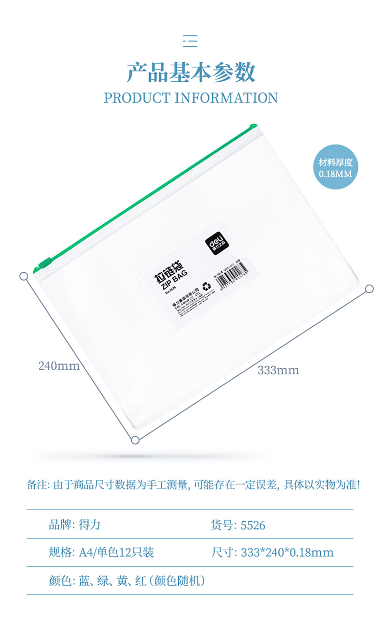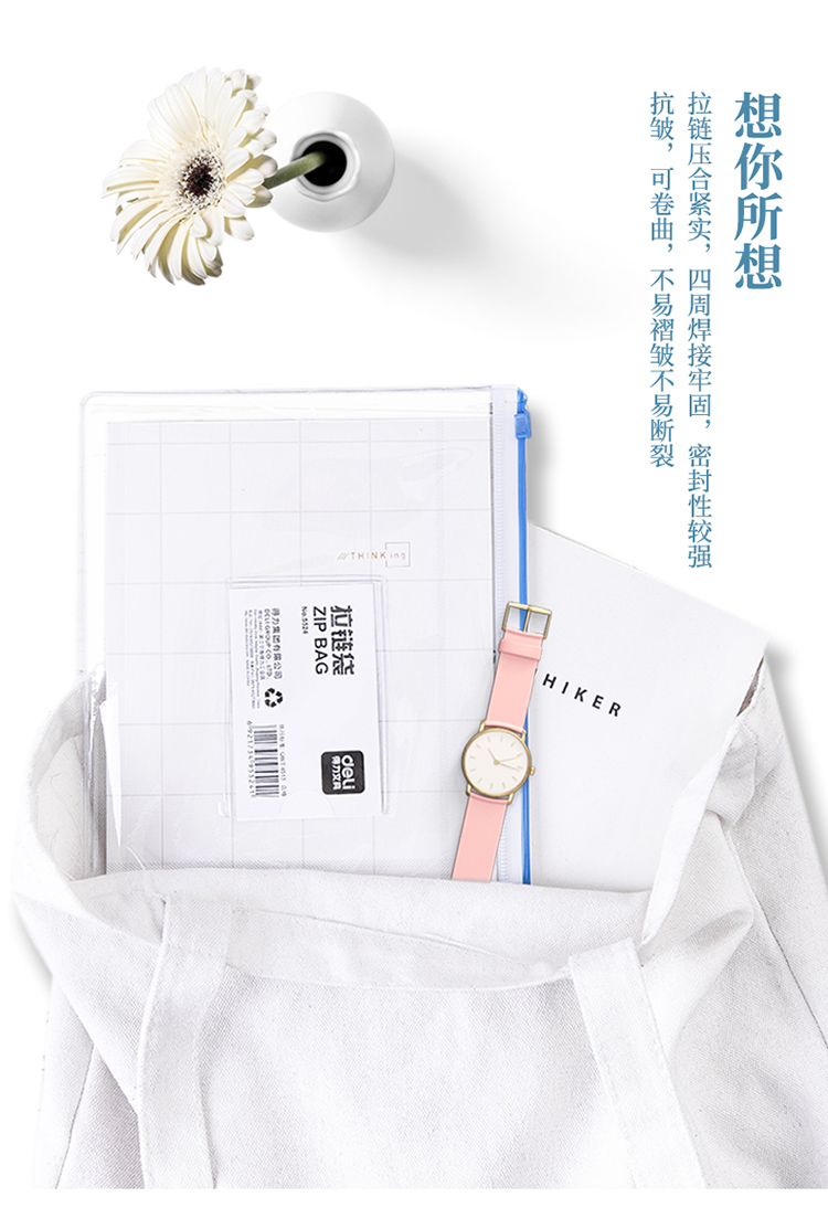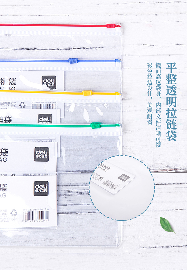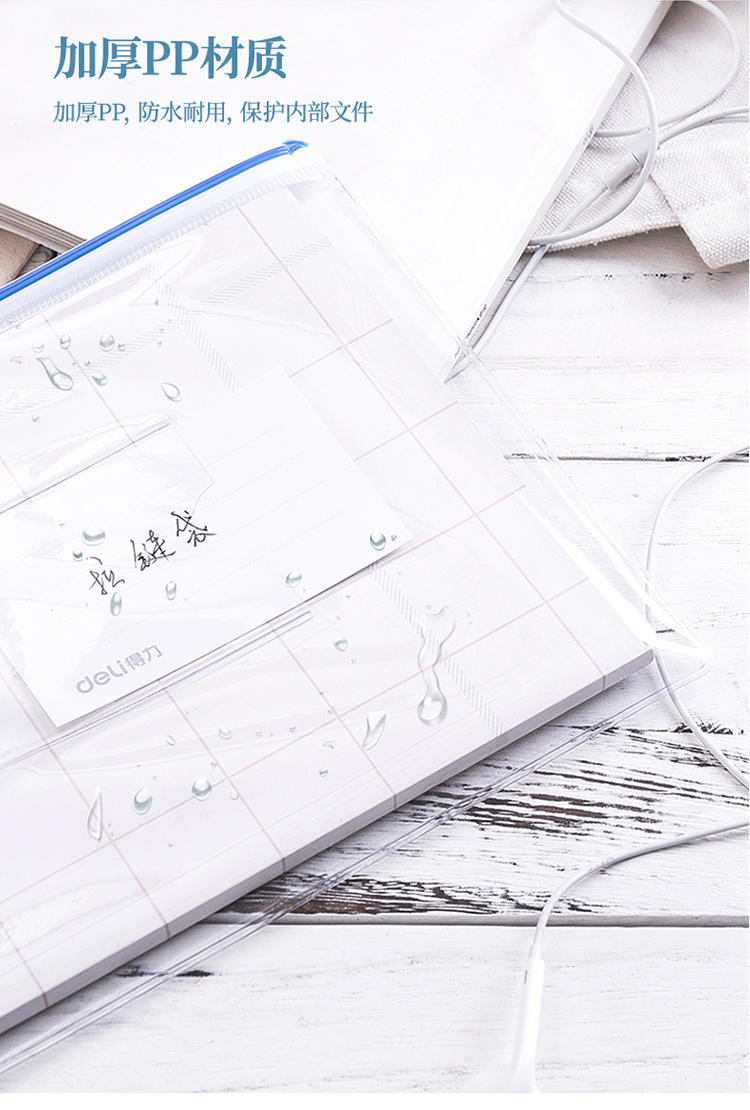 • 商品名称:得力(deli)5526 A4透明拉链袋/文件袋/资料袋