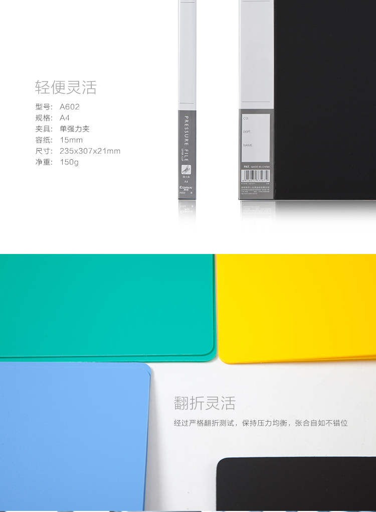 • 商品名称:齐心(Comix) A602 A4文件夹/资料夹/单强力夹 黑色