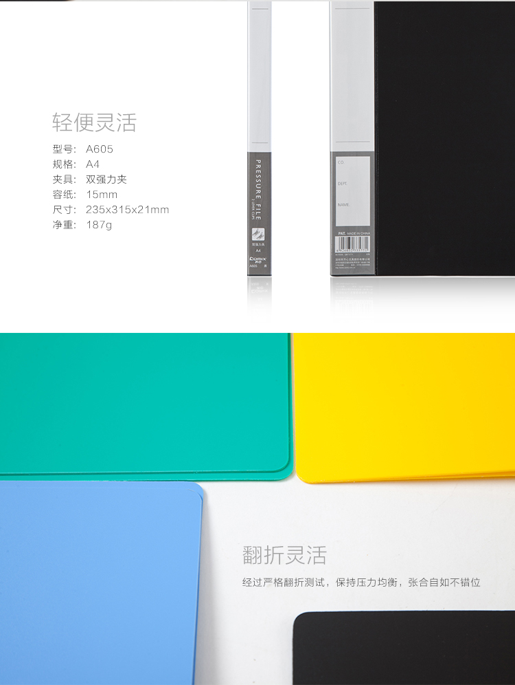 • 商品名称:齐心(Comix) A605 A4文件夹/资料夹/双强力夹 黑色