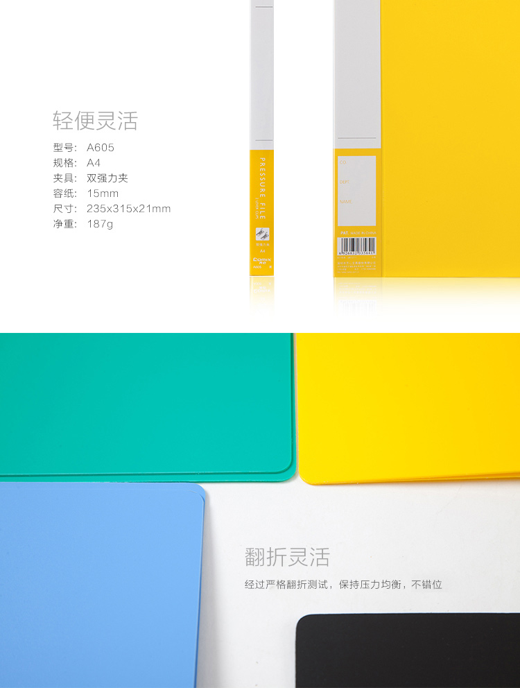 • 商品名称:齐心(Comix) A605 A4文件夹/资料夹/双强力夹 黄色