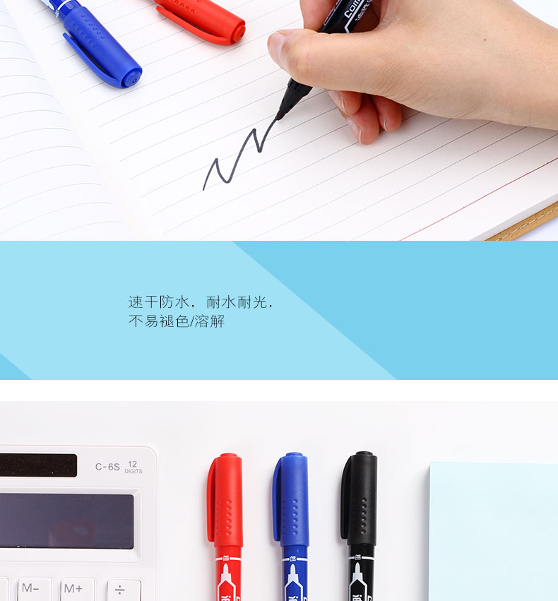 • 商品名称:齐心(COMIX)MK804 小双头油性记号笔 0.5mm和2.0mm 12支/盒 蓝色