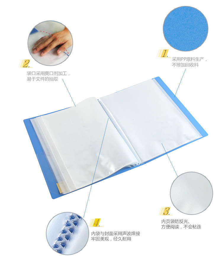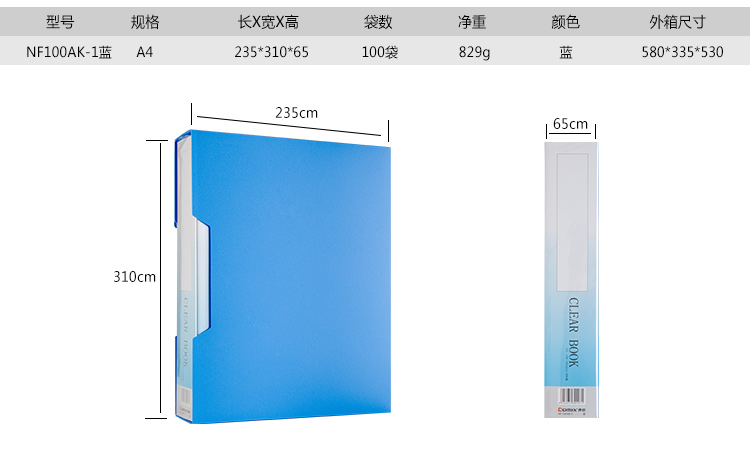 • 商品名称:齐心(Comix) NF100AK A4/100页文件夹资料册/文件册 蓝色