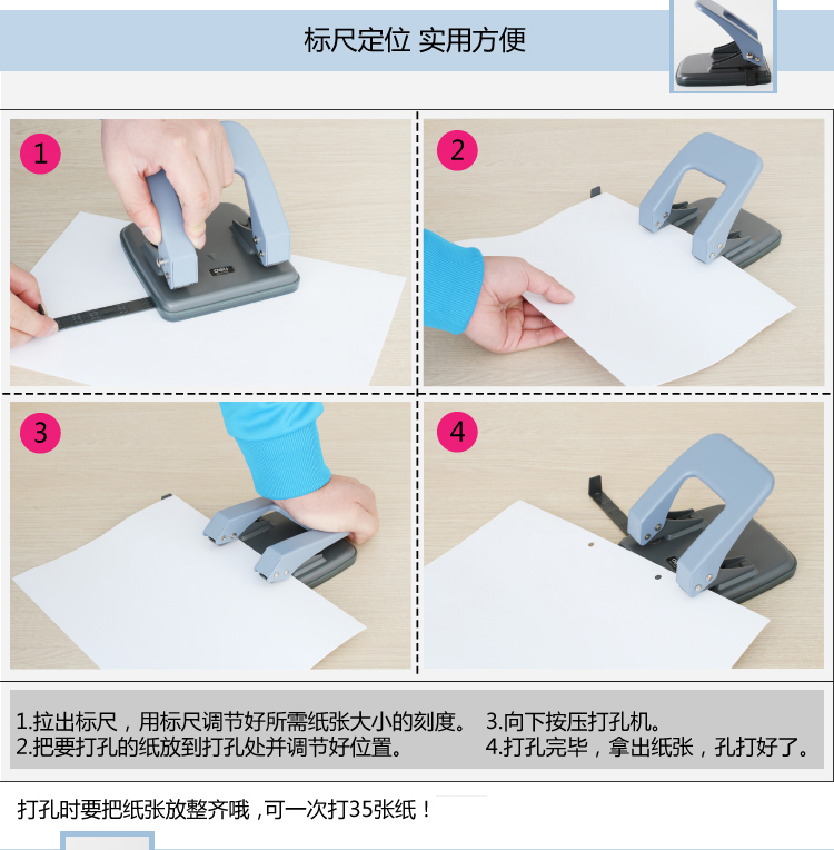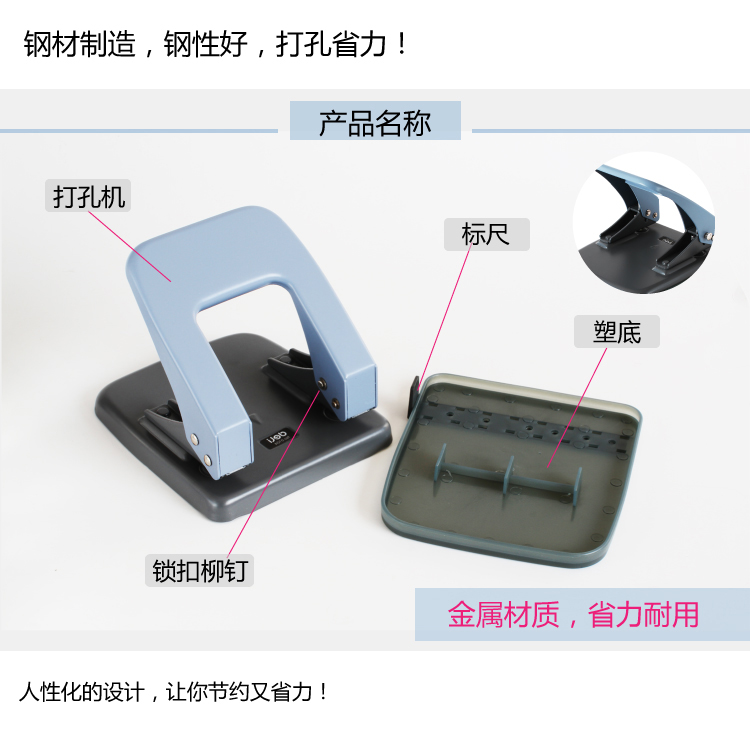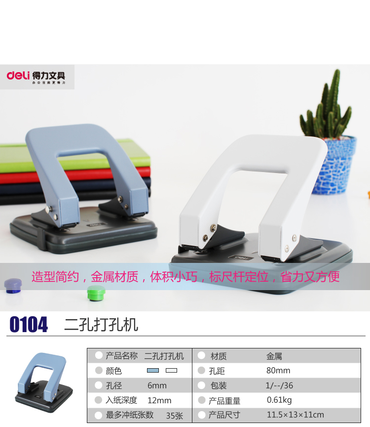 • 商品名称:得力(deli)0104 两孔打孔机可打35张 孔距80mm 颜色随机