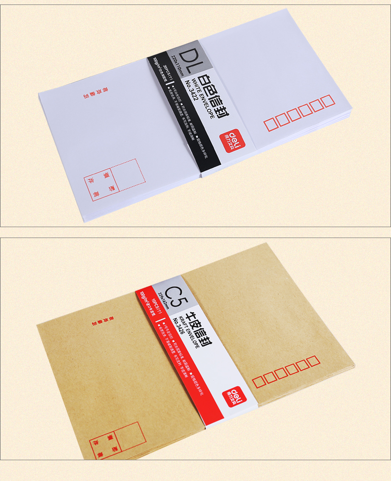 • 商品名称:得力(deli)3423 5号牛皮纸信封信封袋票工资袋 20个/包
