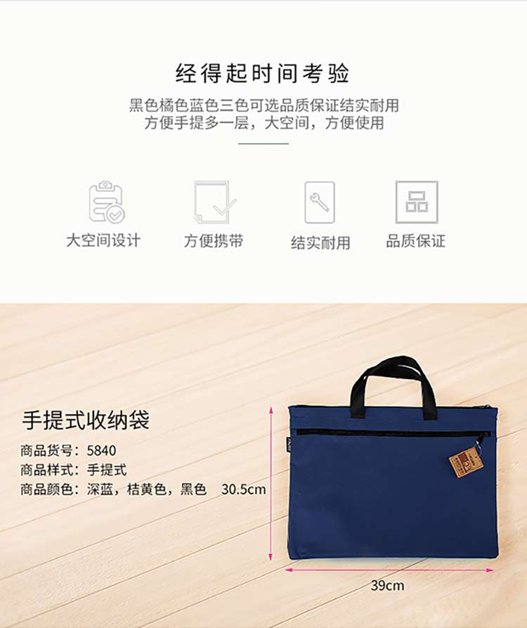 • 商品名称:得力(deli)5840 双层事务包拉链袋 手提商务会议包 39*29cm 黑色