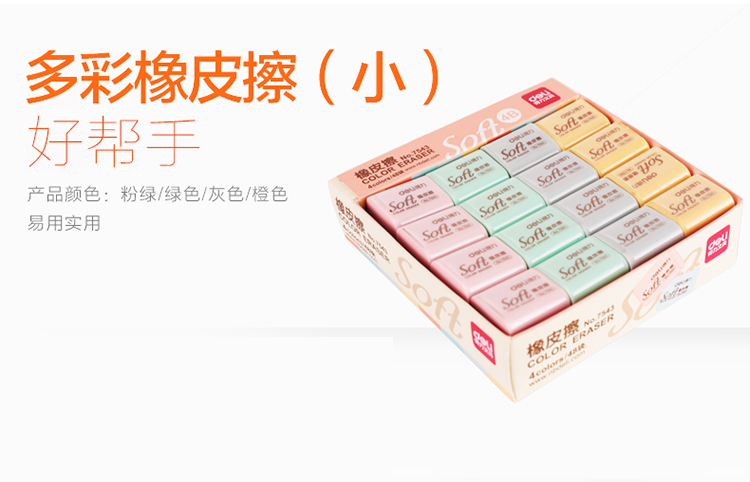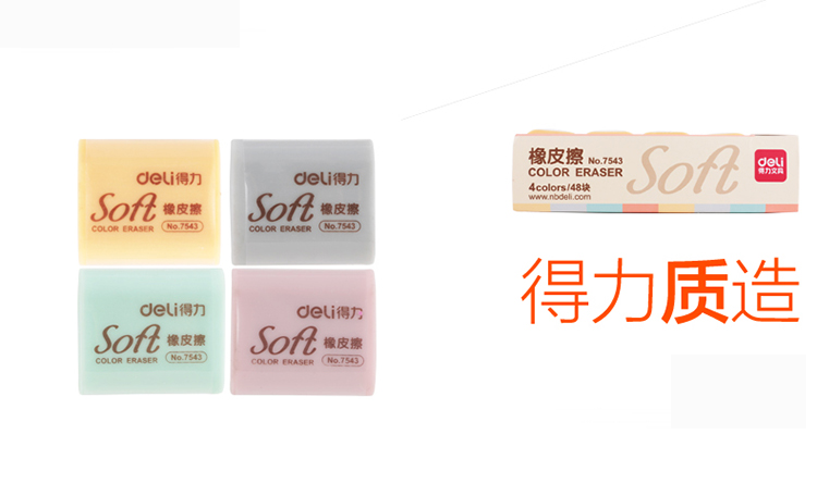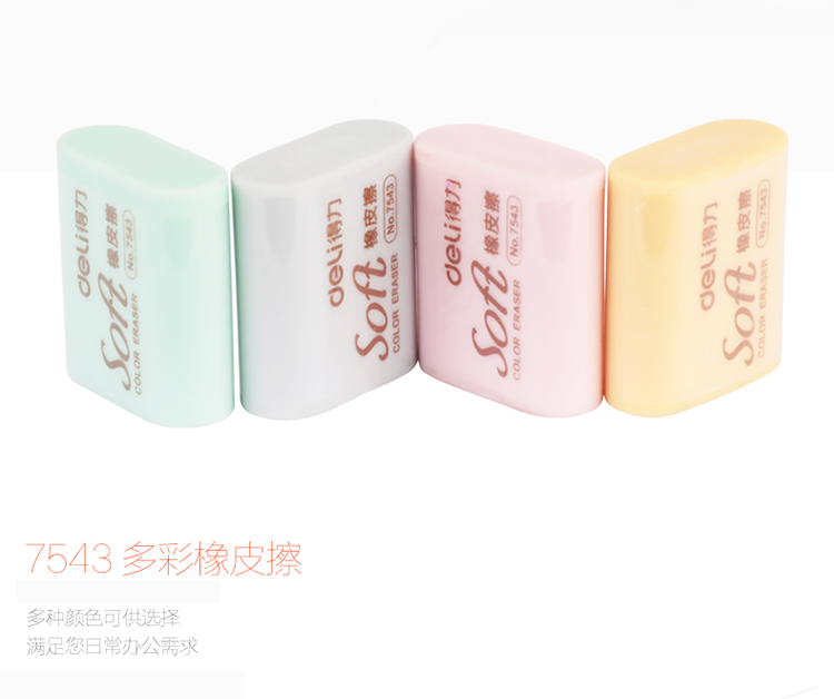 得力(deli)7543 学生考试美术多彩橡皮擦 30*27*12mm/块