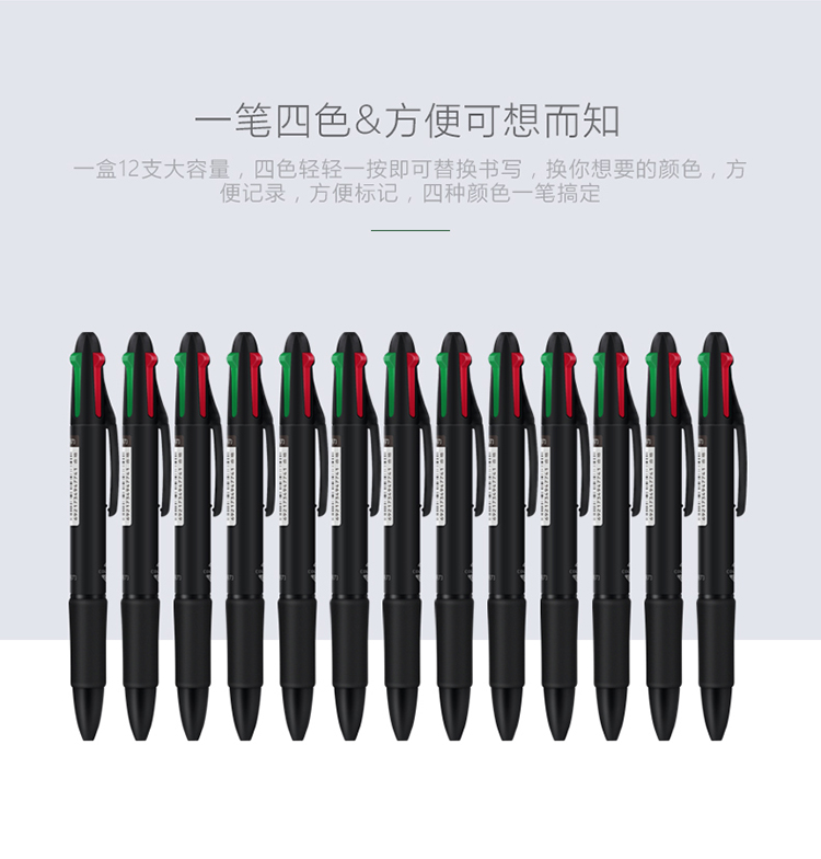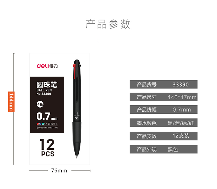 • 商品名称:得力(deli)33390 多功能四色按动式圆珠笔原子笔油笔 0.7mm 12支/盒