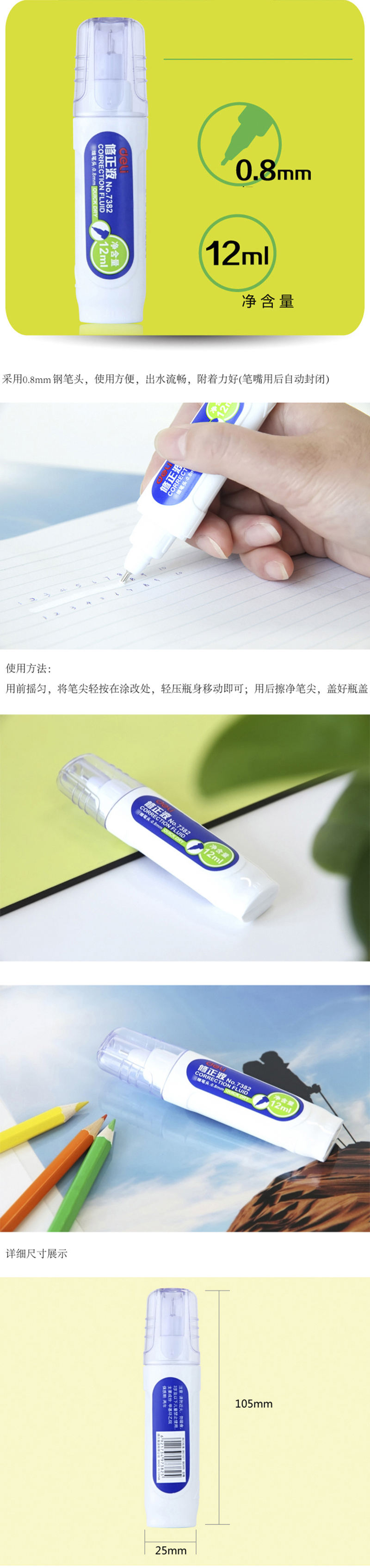 • 商品名称:得力(deli)7382 12ml涂改液环保修正液 可爱卡通学生文具