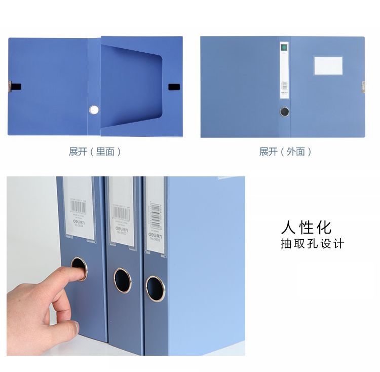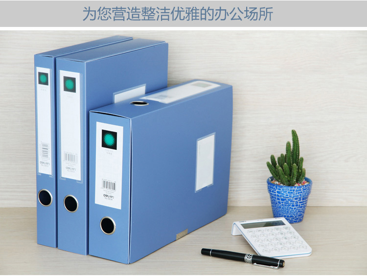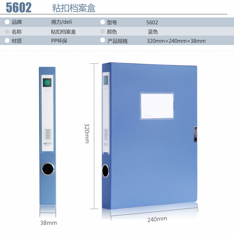 • 商品名称:得力(deli)5602 PP环保材质大容量档案盒 35mm 蓝色 12只/盒 48只/件