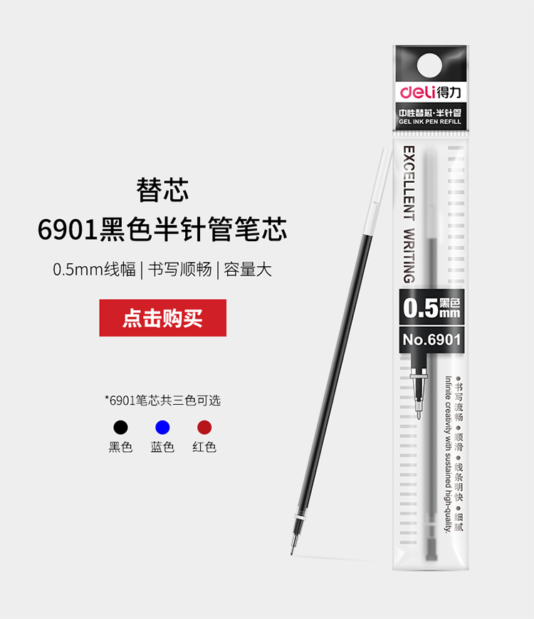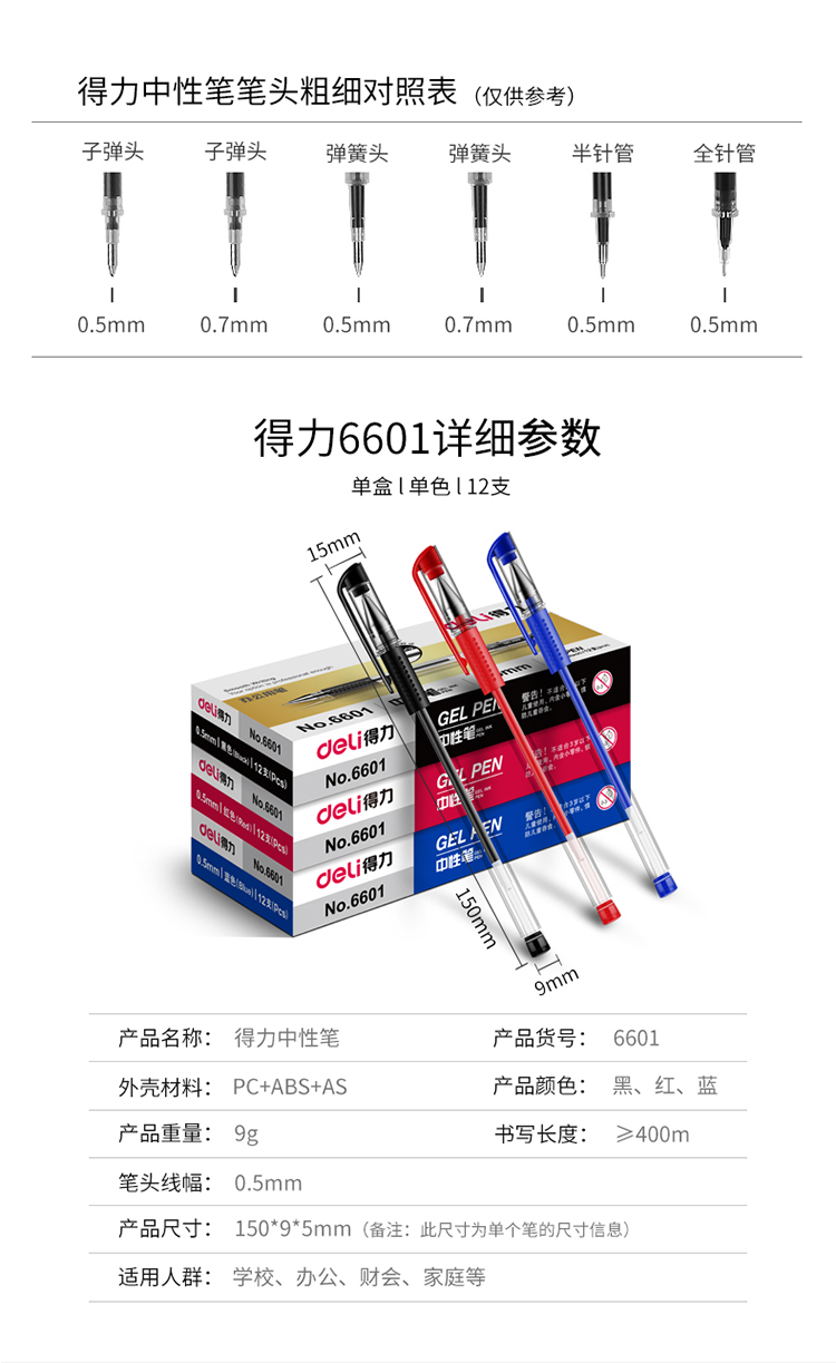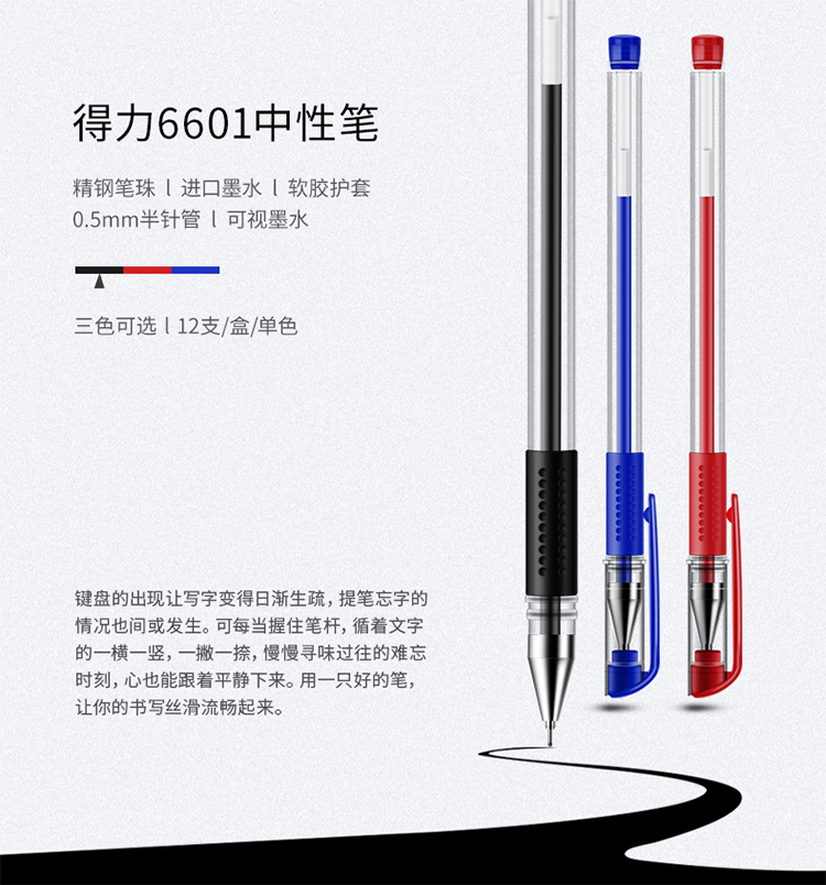 • 商品名称:得力(deli)6601 半针管黑色中性笔水笔签字笔 0.5mm 黑色 12支/盒