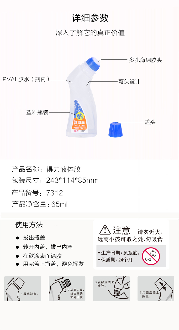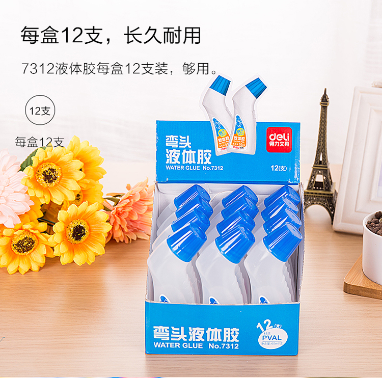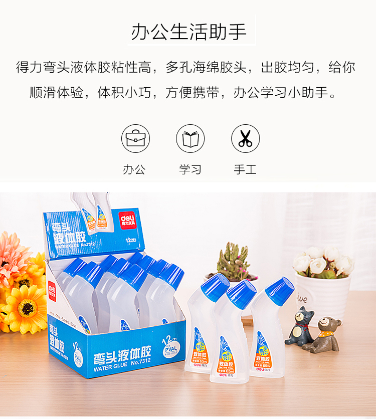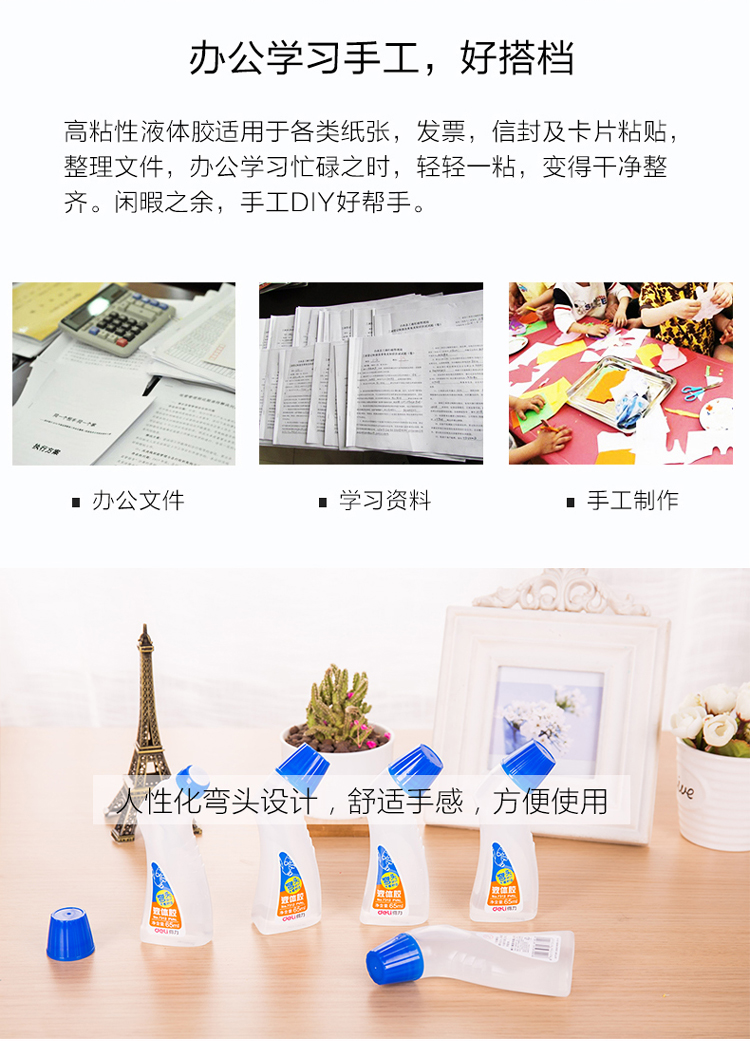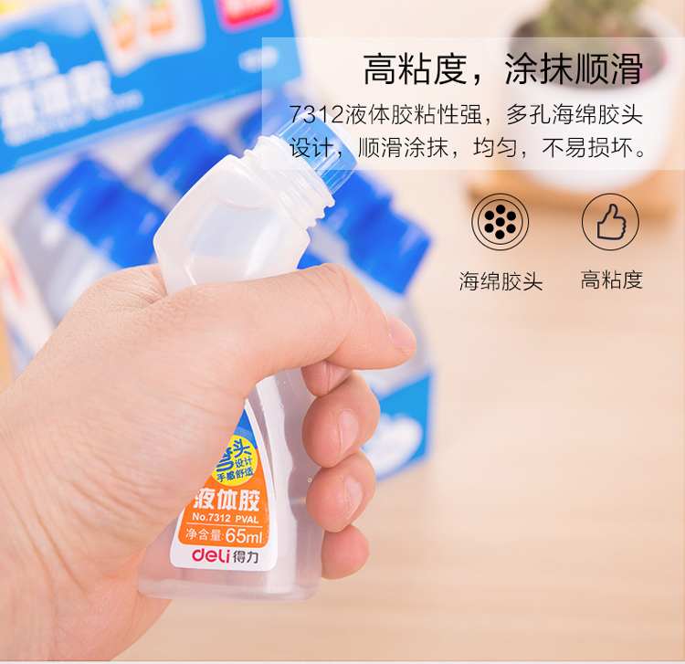 • 商品名称:得力(deli)7312 65ml高粘度弯头胶水/液体胶水 蓝色