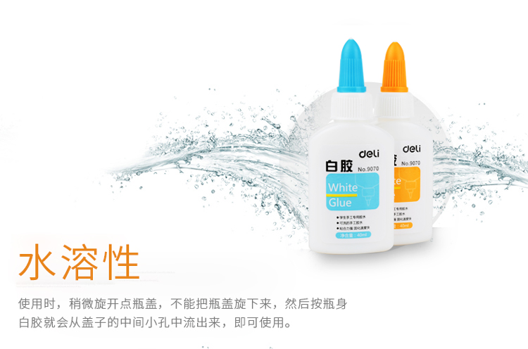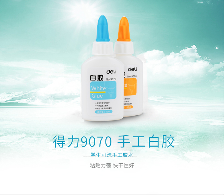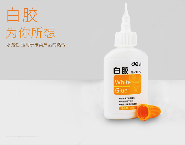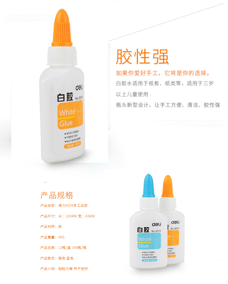 • 商品名称:得力(deli)9070 40ml可洗学生手工DIY白胶/白胶水 12支/盒
