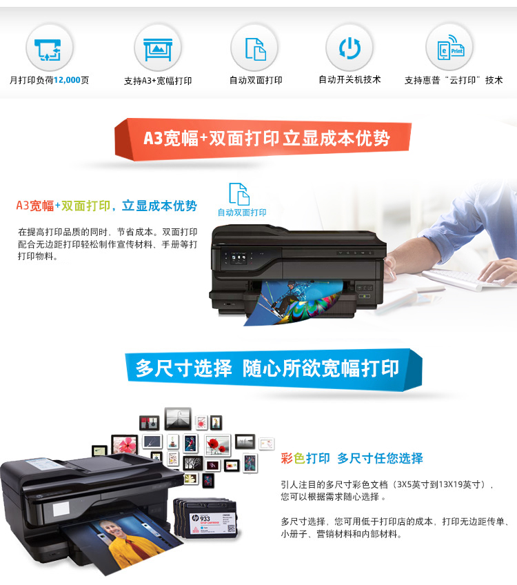 • 商品名称:惠普(HP)7612 惠商系列 A3喷墨宽幅多功能一体机四合一