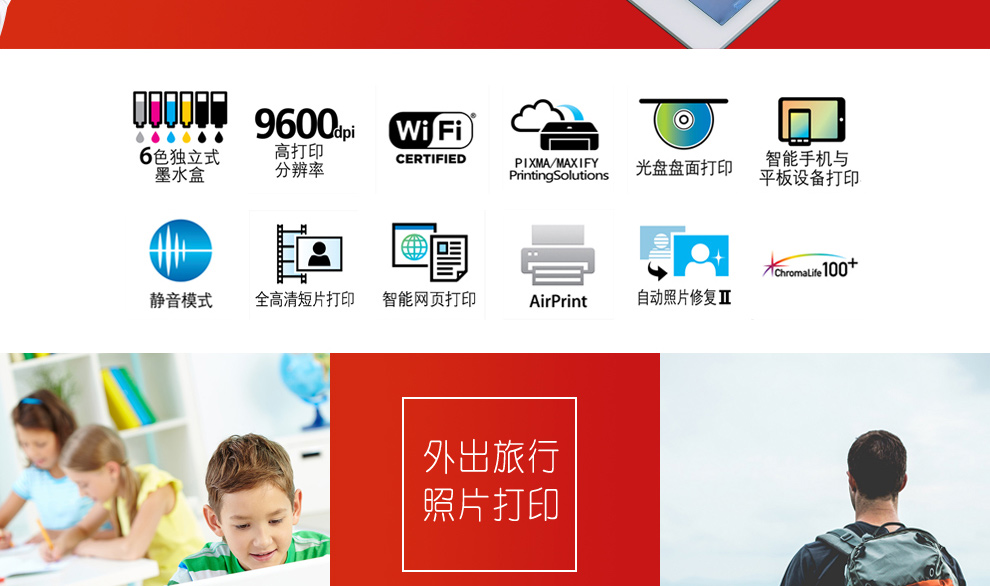 佳能(Canon) ip8780 A3+彩色喷墨打印机 无线照片打印机 6色