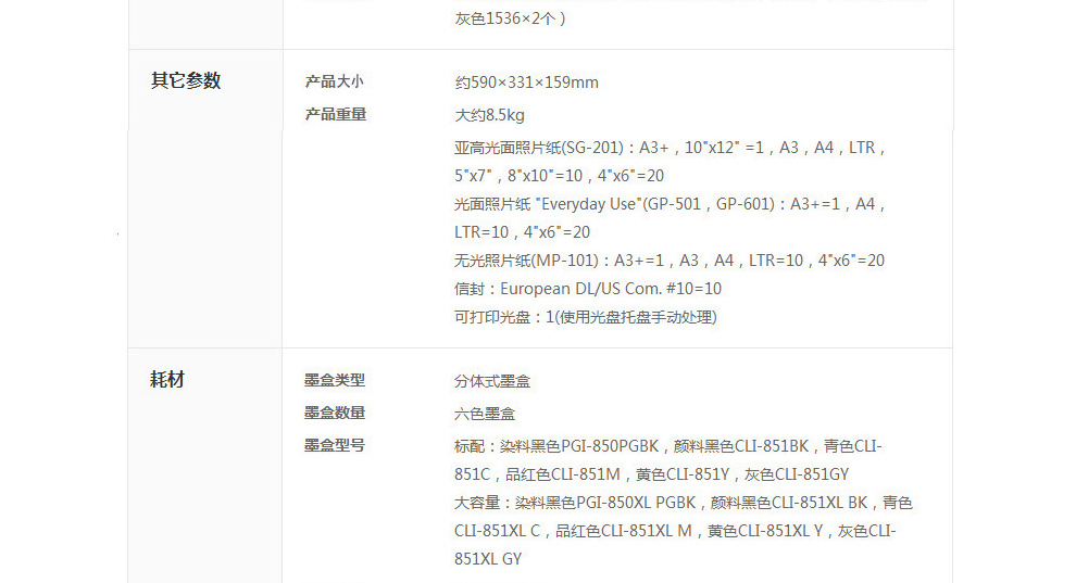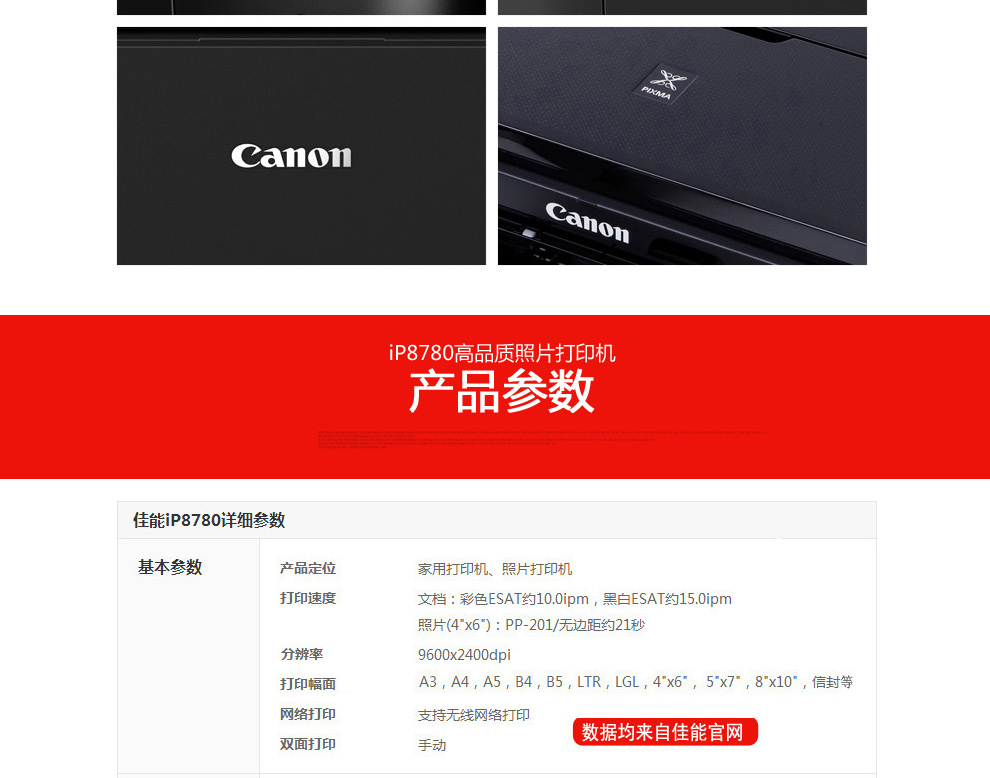 • 商品名称:佳能(Canon) ip8780 A3+彩色喷墨打印机 无线照片打印机 6色