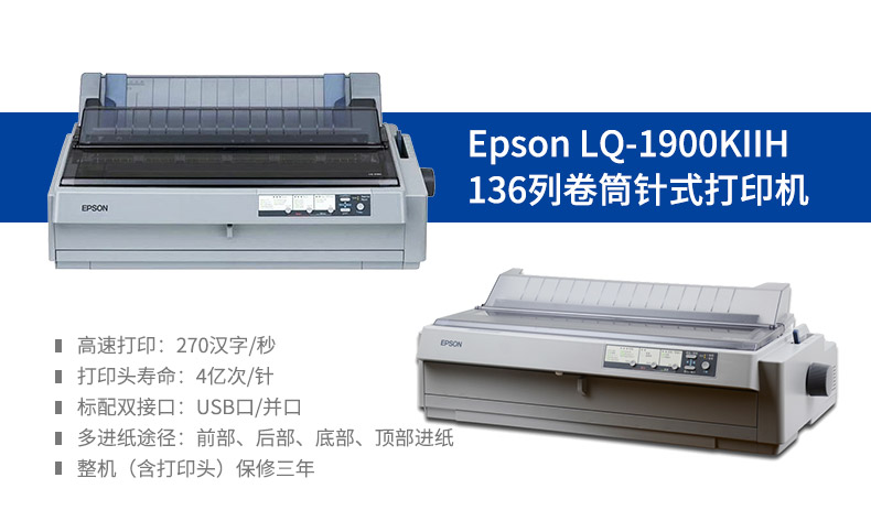 • 商品名称:爱普生(EPSON) LQ-1900KIIH 1900K2H针式打印机(136列卷筒式) 官方标配