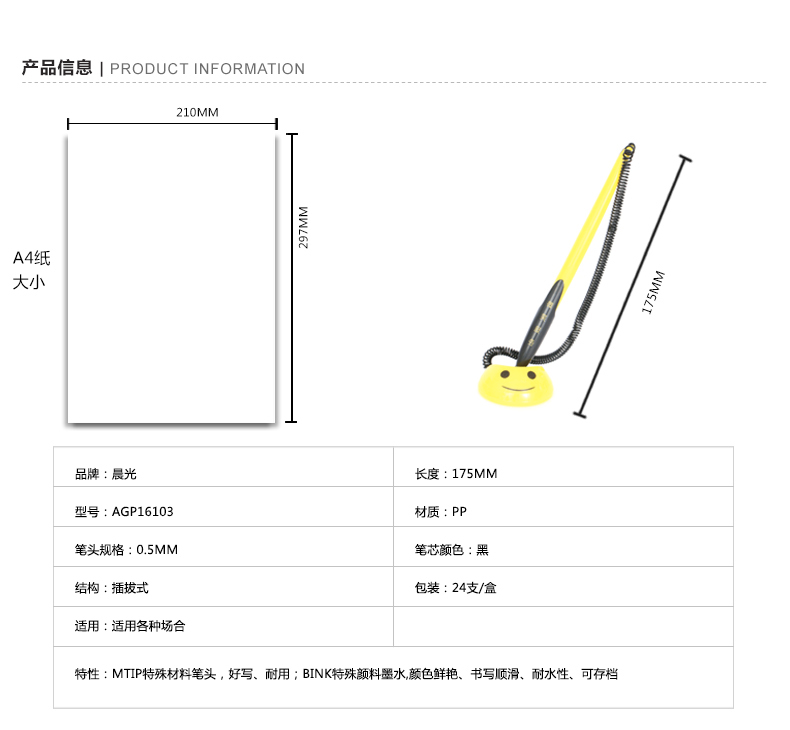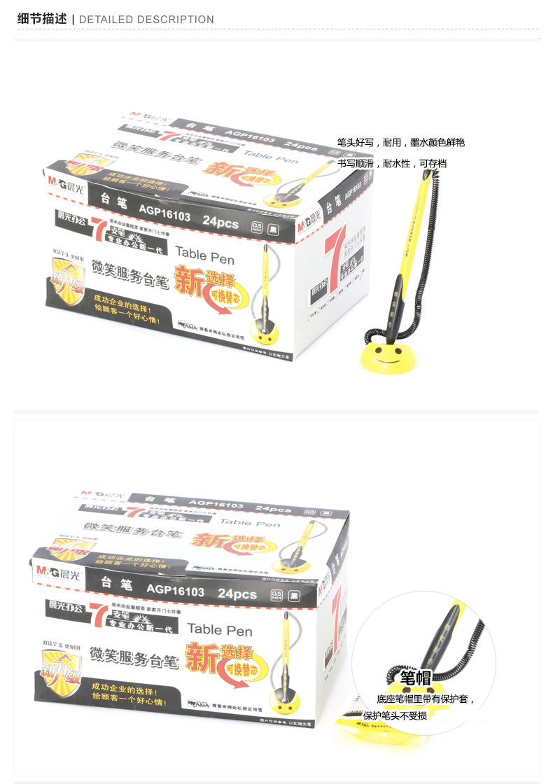 • 商品名称:晨光(M&G) AGP16103 笑脸台式笔签字笔中性笔 银行专用固定笔 0.5mm
