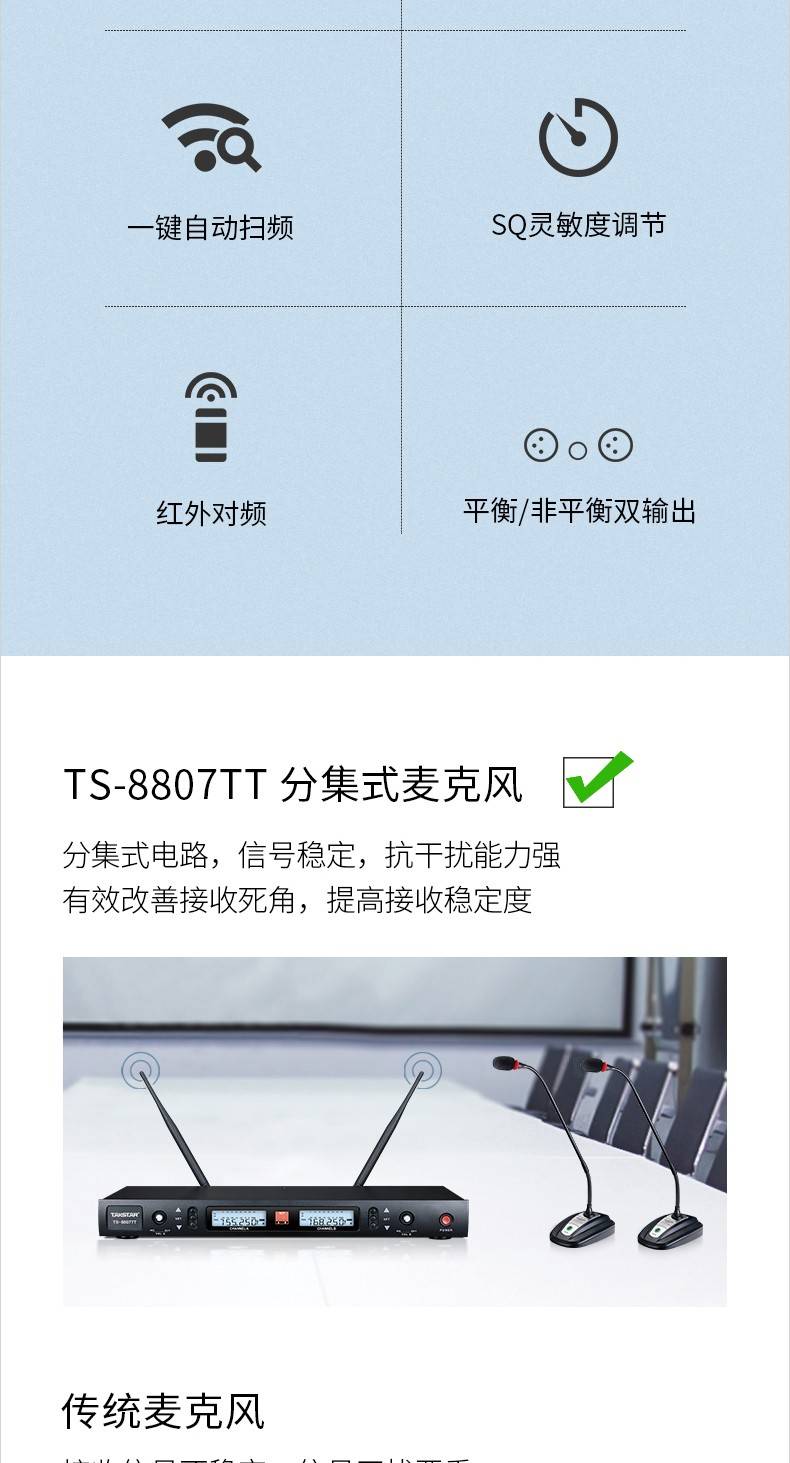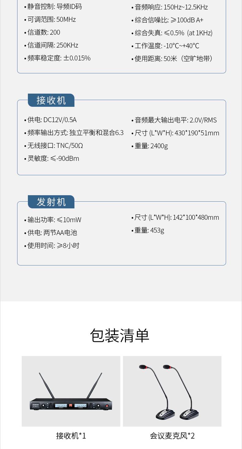 • 商品名称:得胜 TS-8807TT U段无线麦克风一拖二专业鹅颈会议话筒