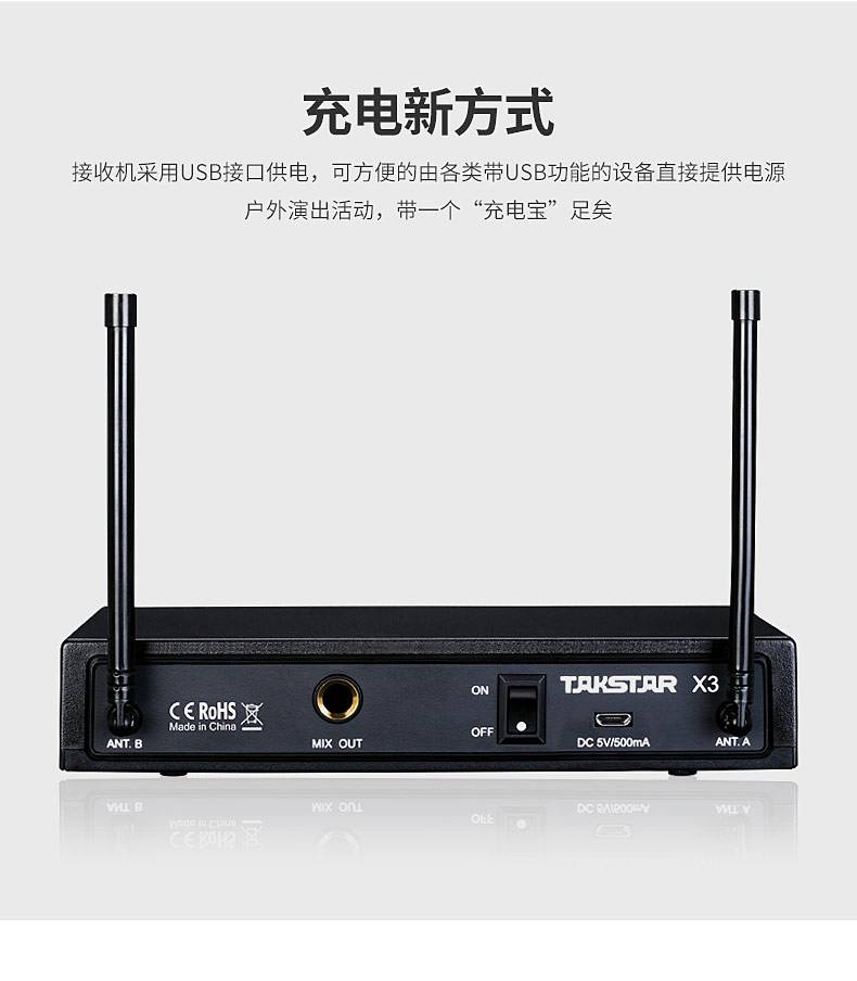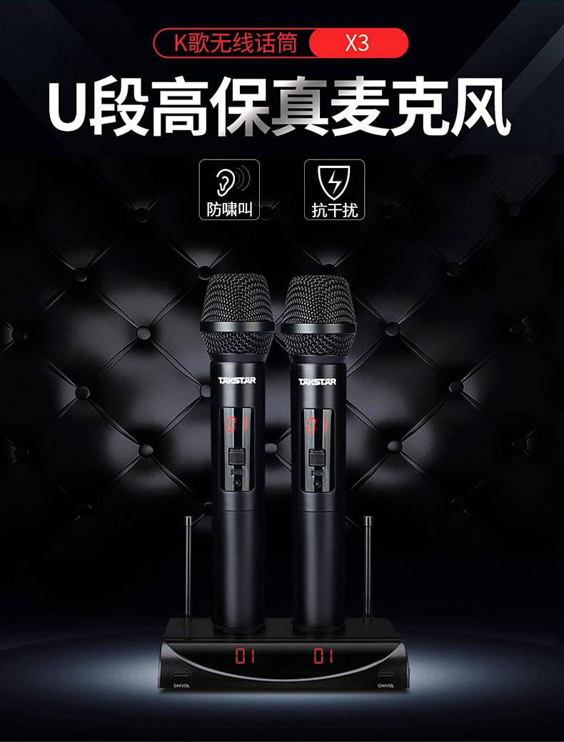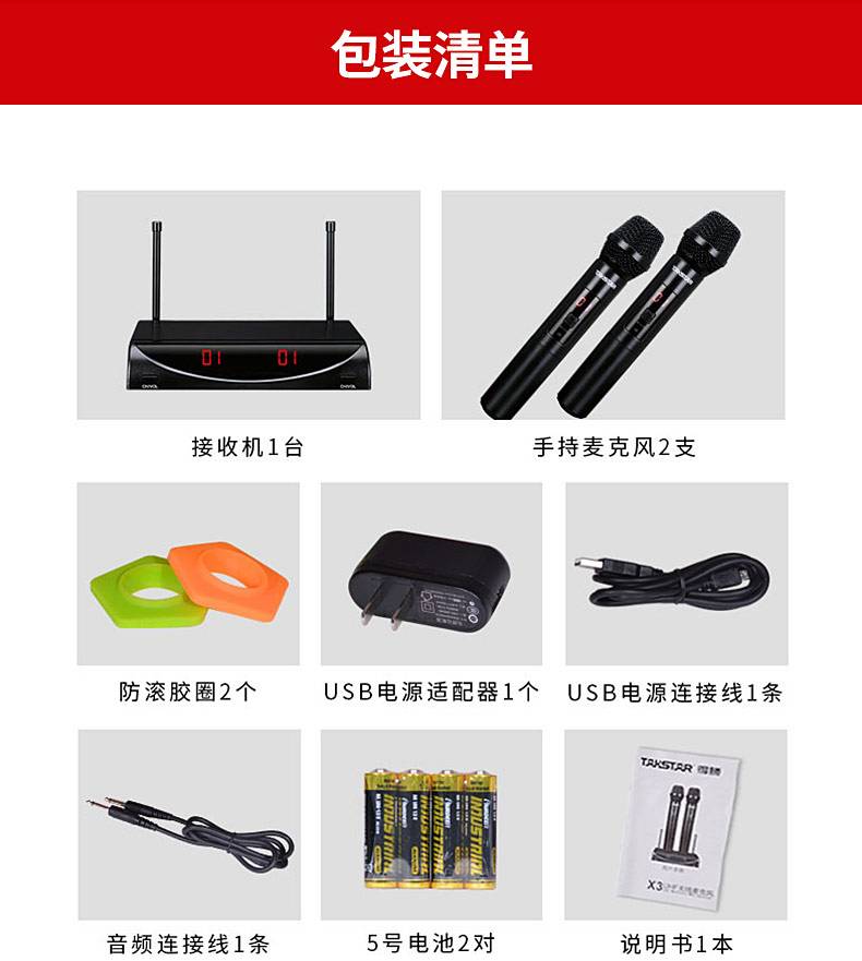 • 商品名称:得胜 X3 无线话筒麦克风 一拖二U段可调频 家庭KTV会议舞台 双手持麦克风便携式USB供电 钢琴黑