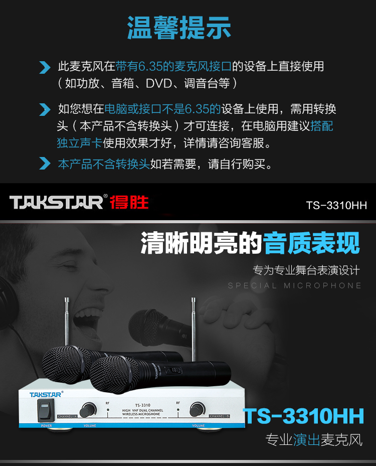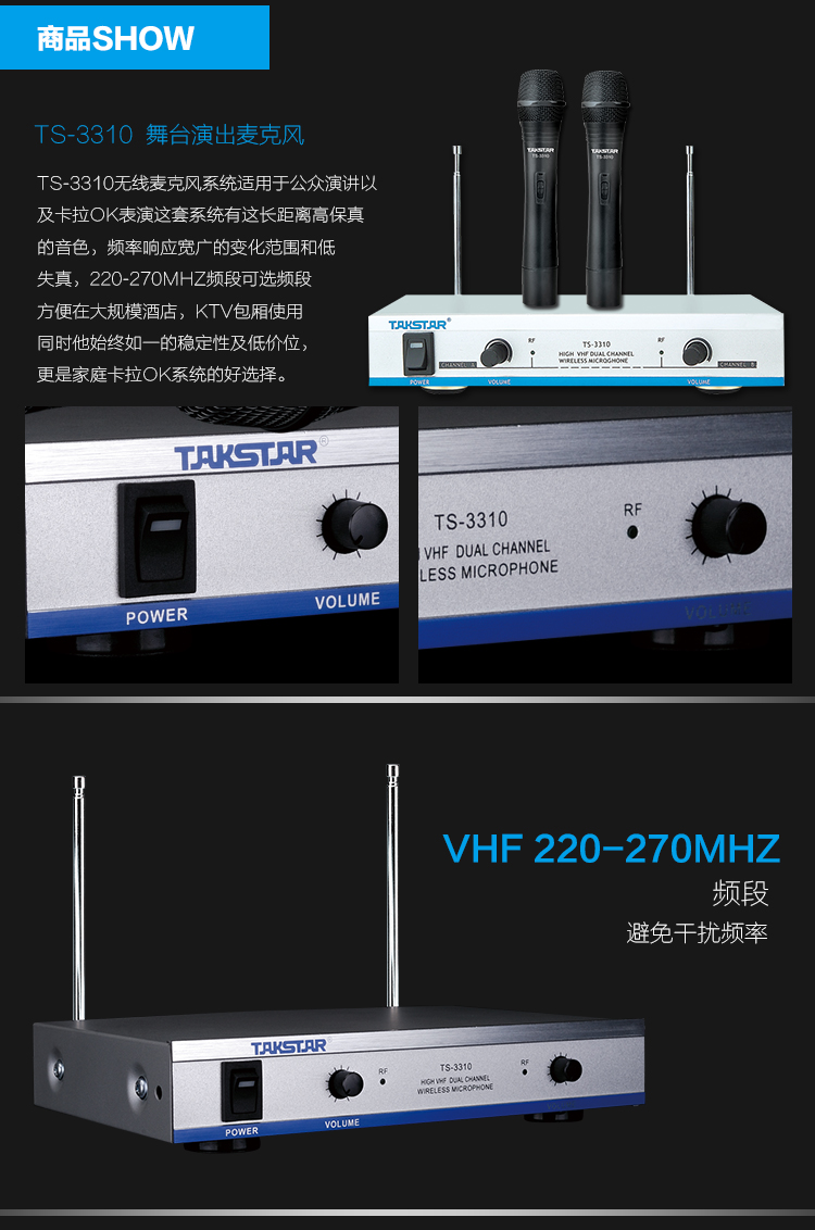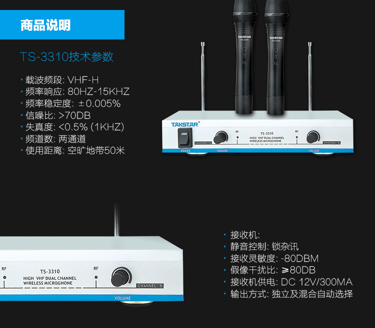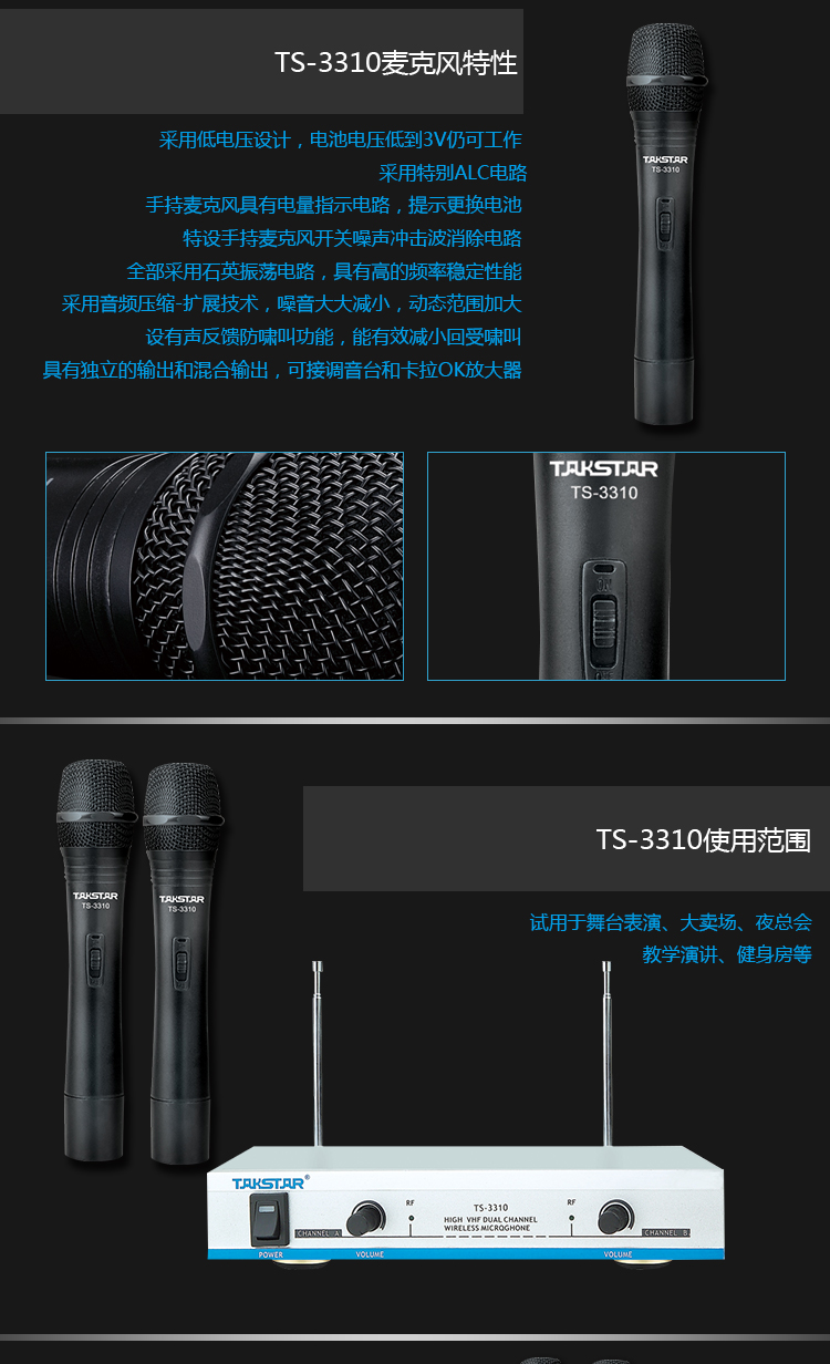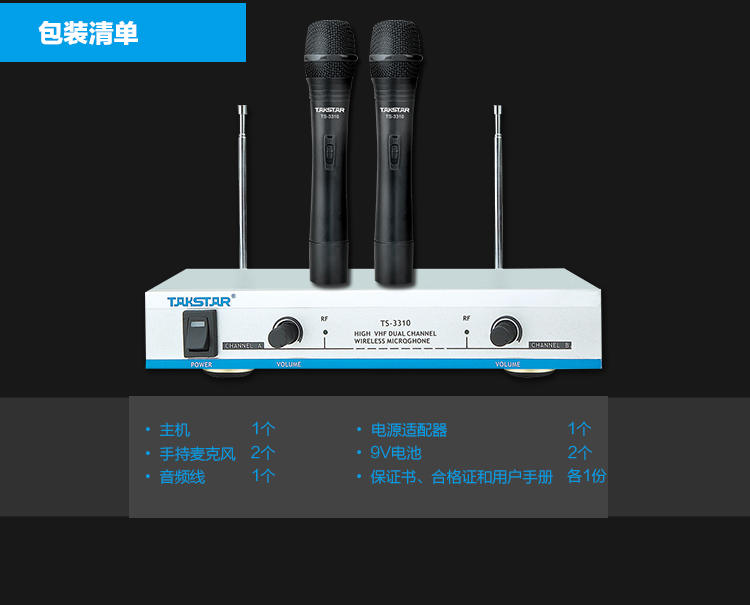 • 商品名称:得胜 TS-3310HH 一拖二手持无线麦克风卡拉OK家用KTV舞台演出无线话筒黑色