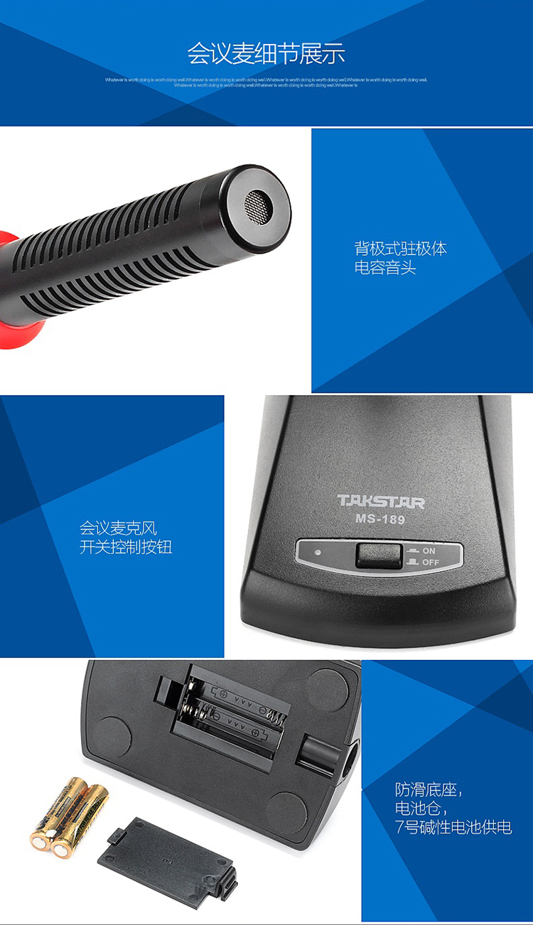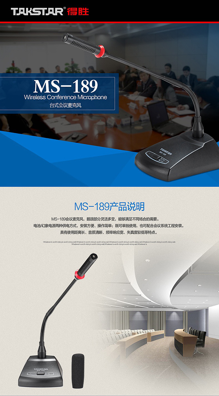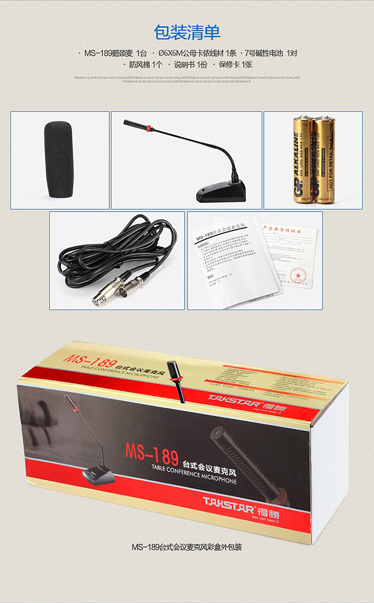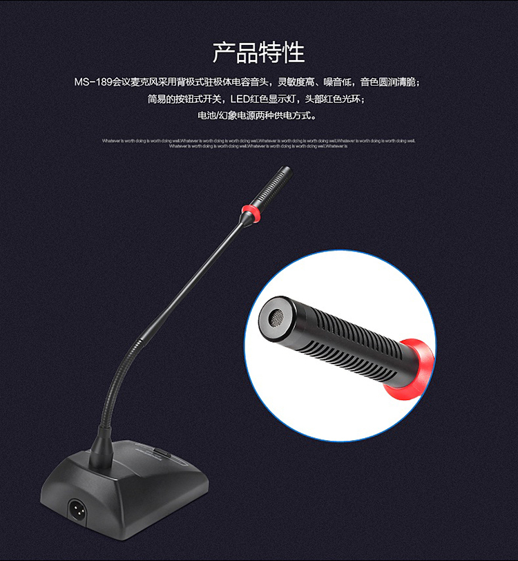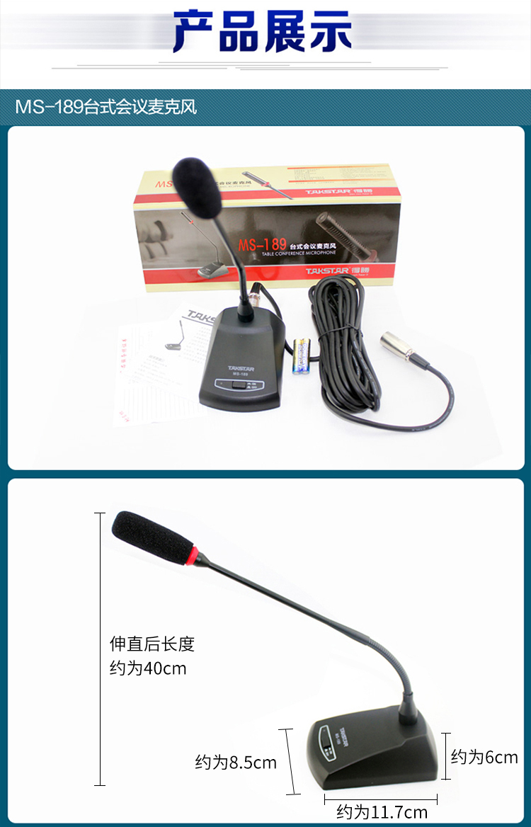 • 商品名称:得胜 MS-189 台式会议话筒 鹅颈有线会议麦克风 大型活动会议演讲专业鹅颈式电容话筒 黑色