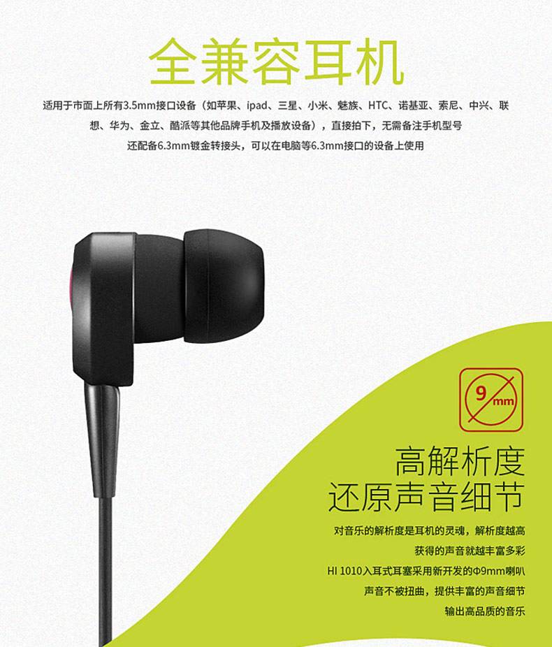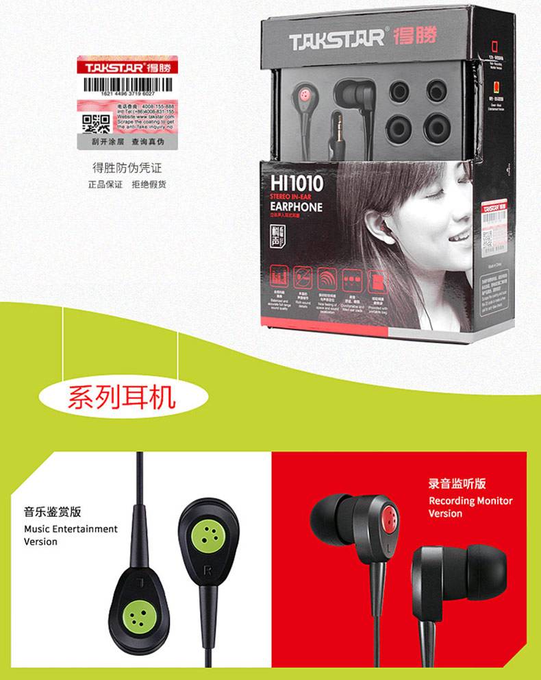 • 商品名称:得胜 HI 1010 入耳式K歌录音YY电脑耳塞HIFI手机耳机(红色)