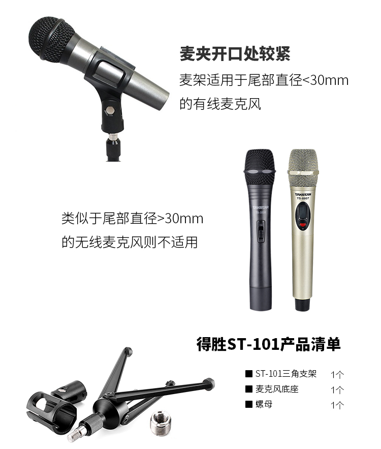 得胜 ST-101 无线麦克风支架话筒夹头桌面三角架话筒支架 桌面支架 (ST-101)
