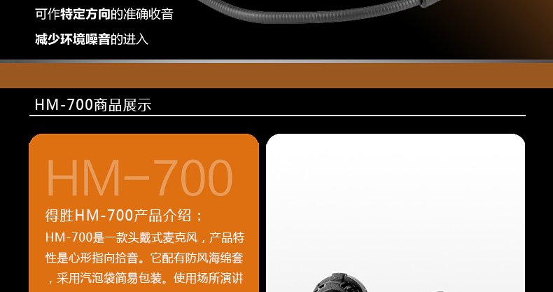 • 商品名称:得胜 HM-700 头戴式麦克风扩音器专用耳挂话筒适用教师教学培训导游扩音器