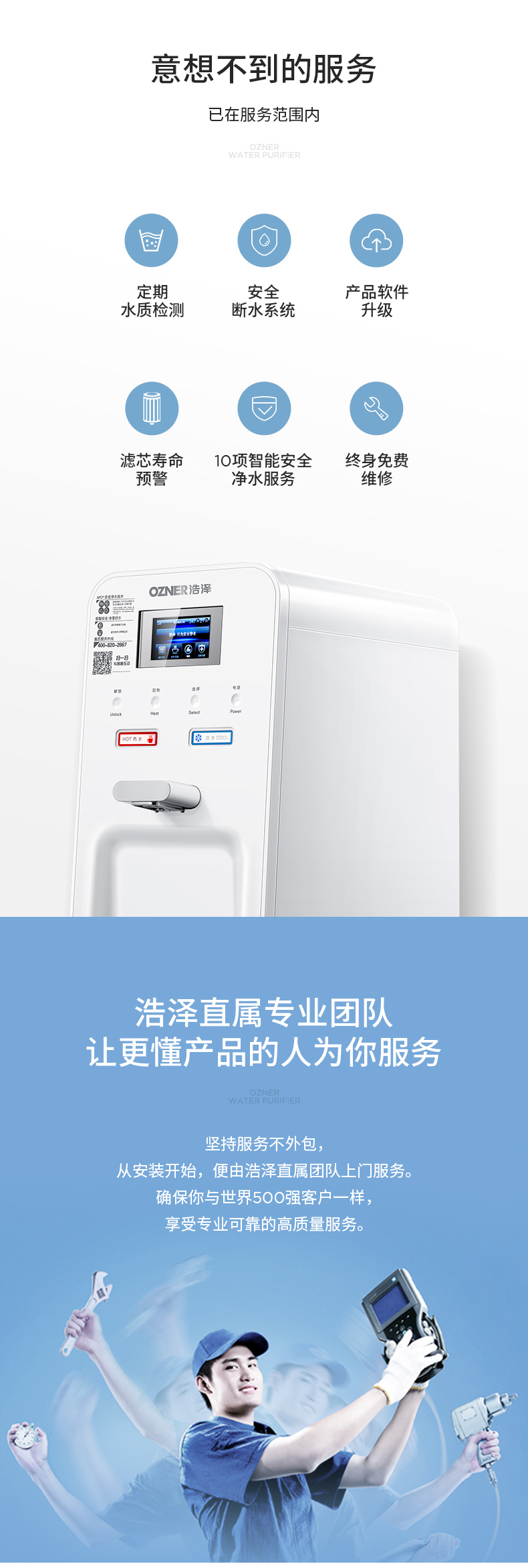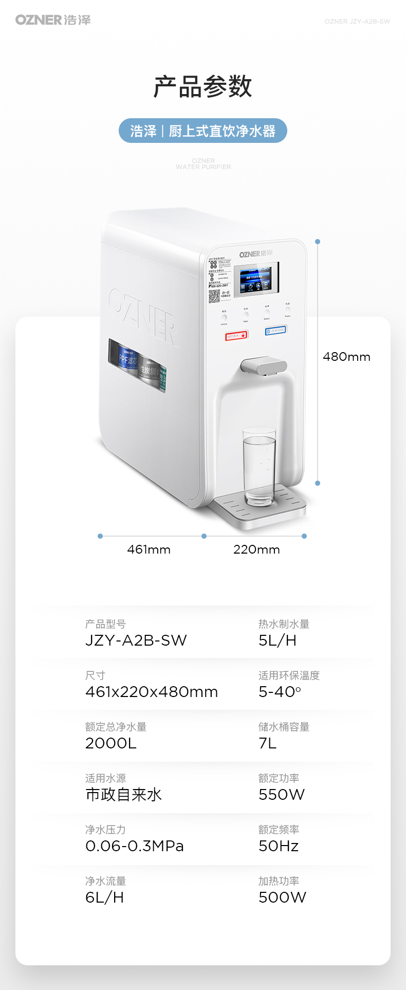 • 商品名称:浩泽 JZY-A2B-SW 厨上型净水器 家用加热直饮厨房净水机纯水机滤芯饮水机加热一体机冷热出水