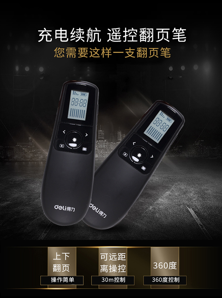 • 商品名称:得力(deli)2804 液晶显示可充电翻页笔/PPT翻页笔/激光翻页笔/无线演示器 绿光