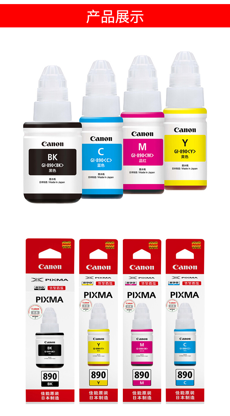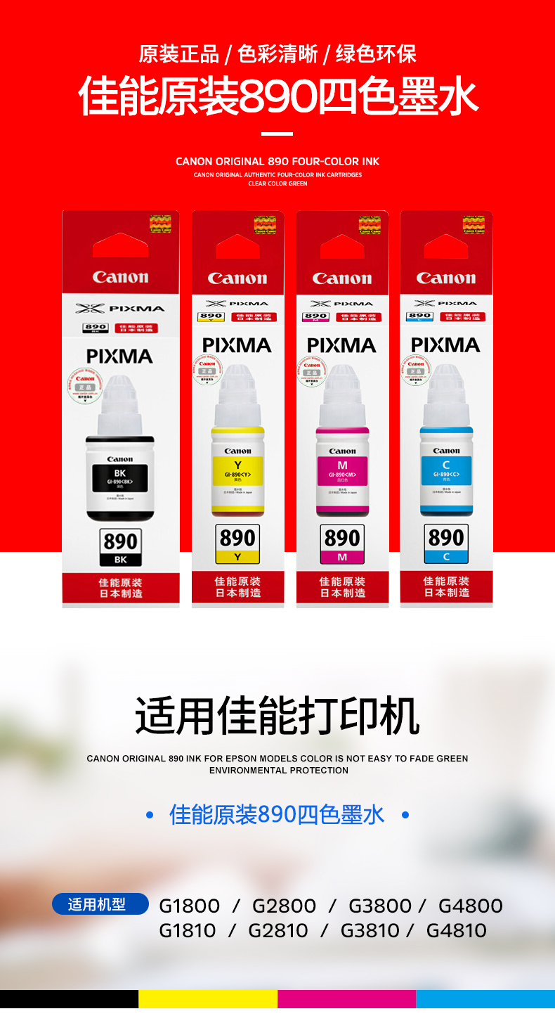 • 商品名称:佳能(Canon) GI-890 原装墨水四色墨盒 适用于G1800 G2800 G3800 G1810 G2810打印机 (GI-890 M 红色)