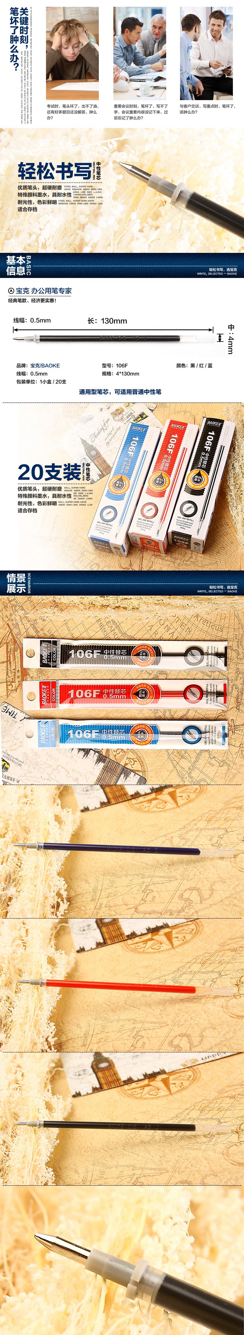 • 商品名称:宝克(BAOKE) PS106F 中性笔签字笔替芯通用笔芯 0.5mm 20支/盒(黑色)
