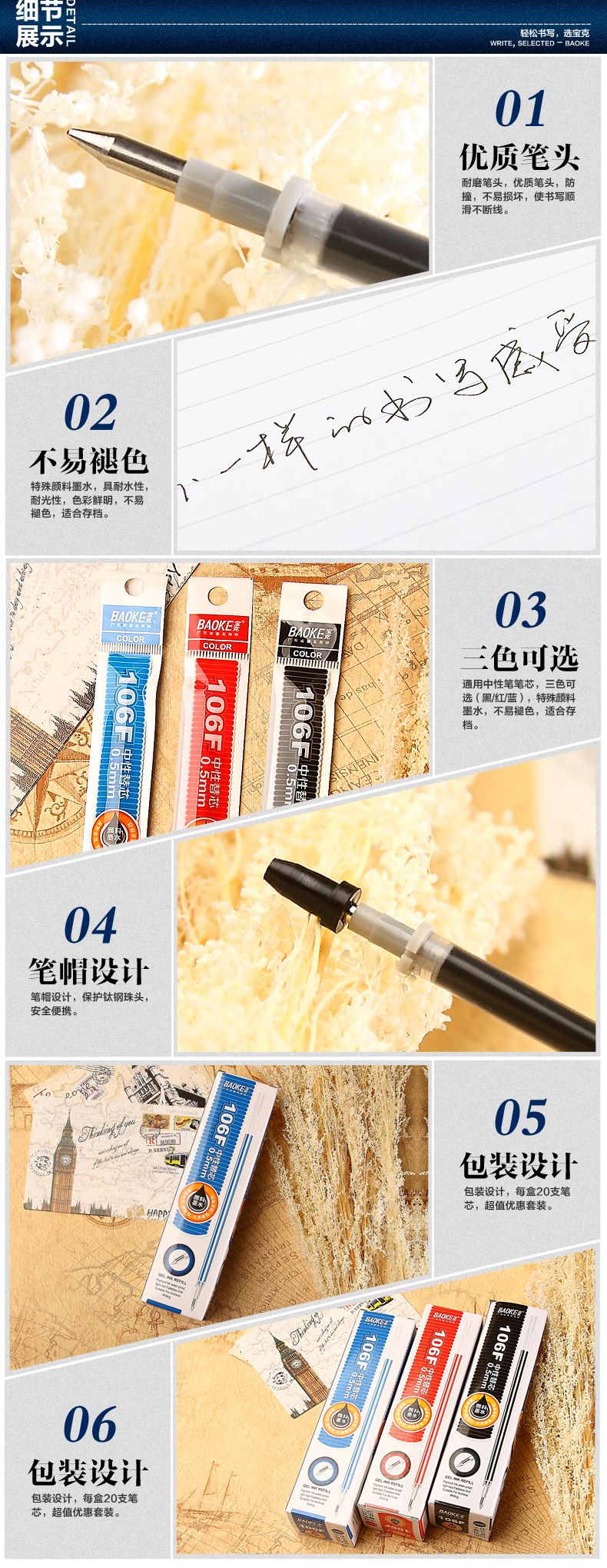宝克(BAOKE) PS106F 中性笔签字笔替芯通用笔芯 0.5mm 20支/盒(黑色)