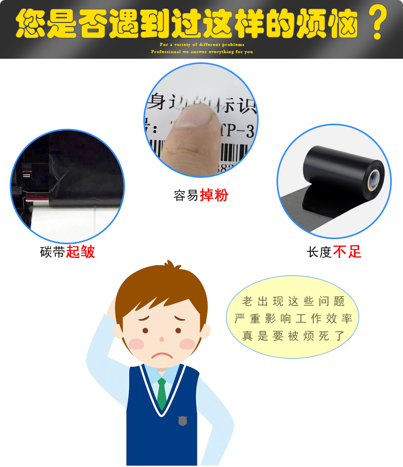 • 商品名称:安兴 树脂碳带 热转印碳带 打印清晰 防括不掉色碳带(110*300)