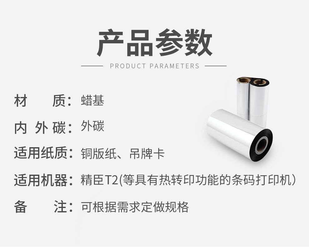 • 商品名称:安兴 蜡基碳带标签机条码打印机热转印贴纸色带 (110mm*70m)